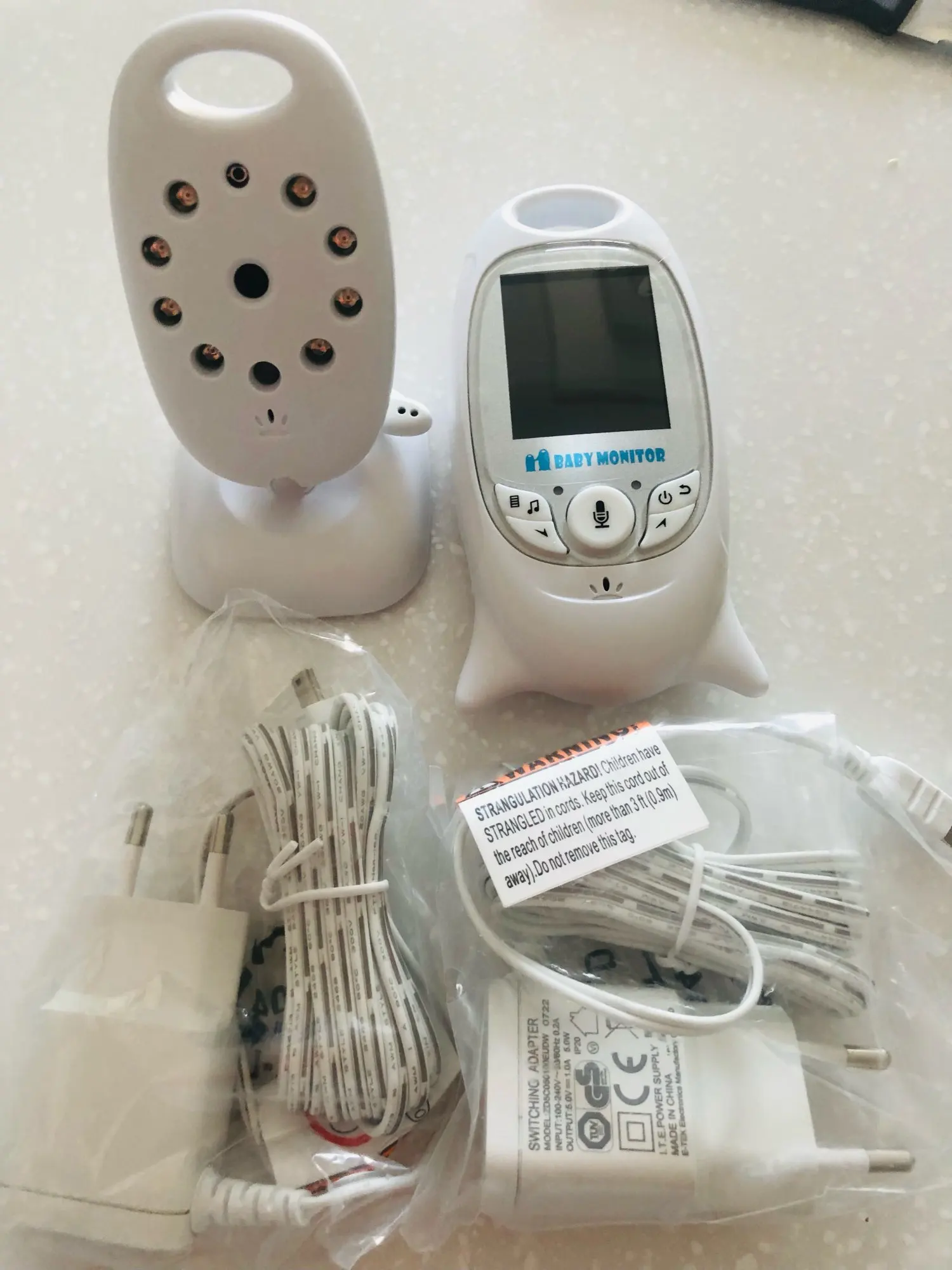 Товар соответствует описанию, посылка шла три месяца из Китая (думала не получу вовремя, но продавец сказал, чтоб я не переживала), пришла как раз когда мы приехали из роддома. Качество видео хорошее, звук отличный, показывает температуру воздуха, дату, время, зарядку, антенну. Камера работает только от провода (поварачивается вверх-вниз и вправо-лево), сам пульт заряжается. Есть русский язык. Рекомендую.