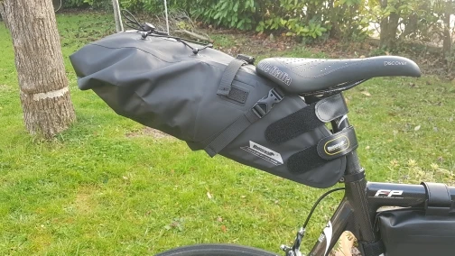 Брал десятилитровый, угадал с размером! На фото в сумке находится одноместная палатка. Легко входит палатка, надувной коврик и ещё достаточно места остаётся, например для тапок, кофты, и ещё по мелочи. Сидит на велосипеде крепко. Сумкой очень доволен! Рекомендую.