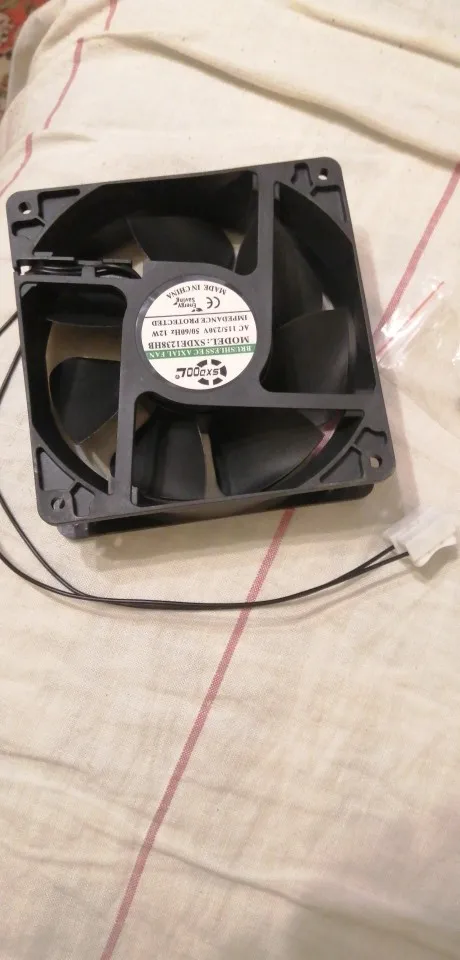 Вентилятор на 220В, 12Вт. Работает. Описание не точное 12 В надо заменить на 12Вт(или W).