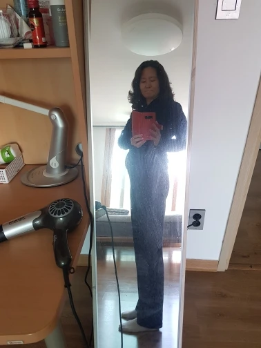 классный костюм. уже второй заказала. не леняет, при стирке не садится, брюки длинные это большой плюс для высоких