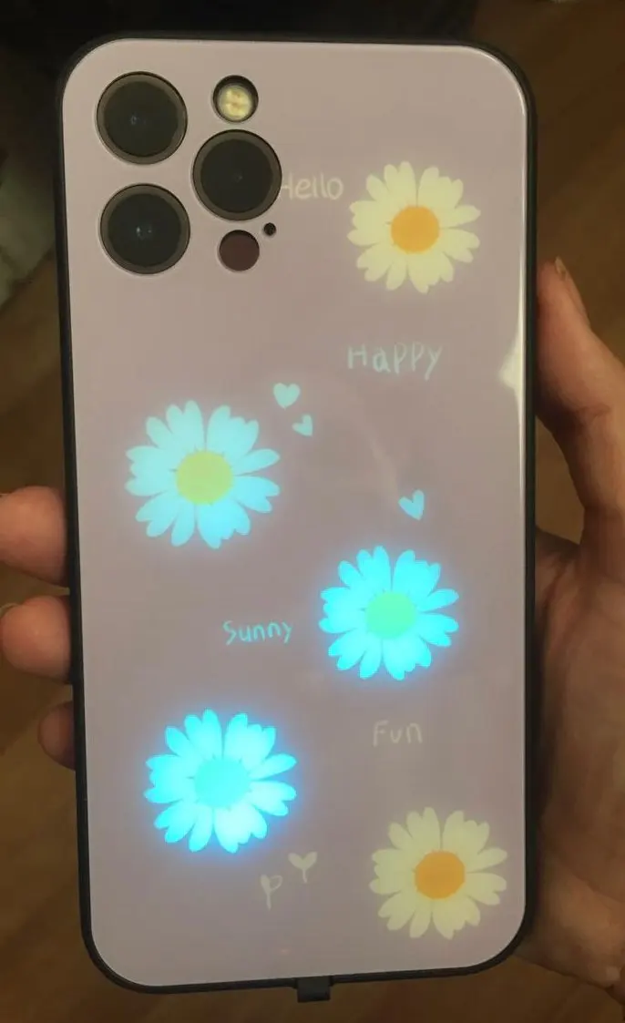 Входящий световая Вспышка чехол-книжка для iPhone 12 11 Pro 7 7 плюс 8 X XS Max SE закаленное стекло фиолетовый с ромашками чехол с изображением цветка