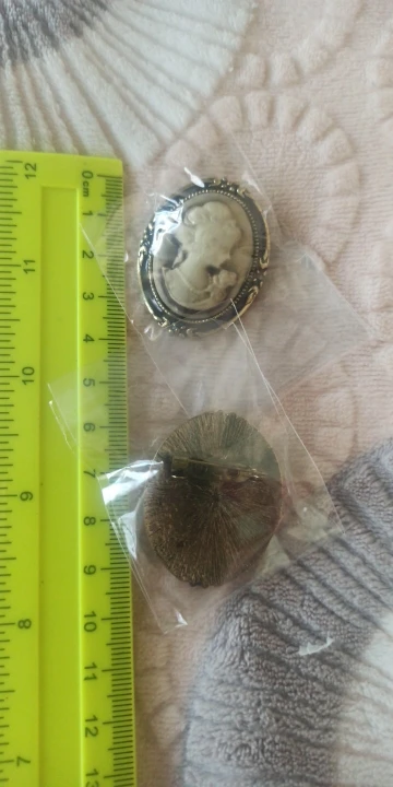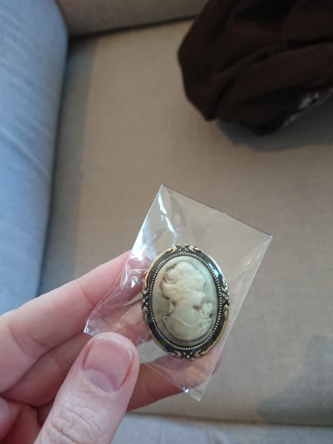Брошь норм сделана, гладко обработан металл, тяжелая, в целом исполнение аккуратное, но сказать что выглядит как настоящая камея сложно, т.к. середина с ликом - это пластмасса и она не того оттенка как на фото, более серая что ли. Не выглядит ни как коралл, ни как перламутр. Но для за 75 руб. сойдет. Заколка - булавка очень простая из мягкого металла (это я узнала пытаясь исправить брак ....). Мне, к сожалению, изделие пришло с сильным браком, середина была не ровная дефект, и по этому не ровно вклеена в рамку, исправить не возможно. Даже оторвав от рамки - при спиливании края до нужной формы, край обломился. Открыла спор. Деньги вернули быстро, поэтому сервис оценила высоко. Но второй раз желание заказывать пропало.