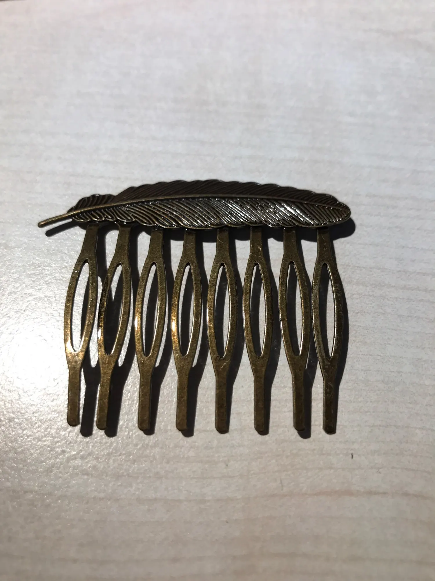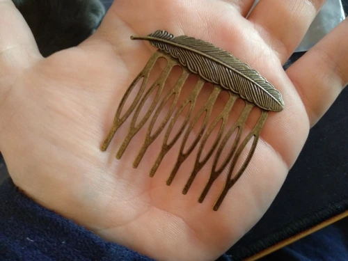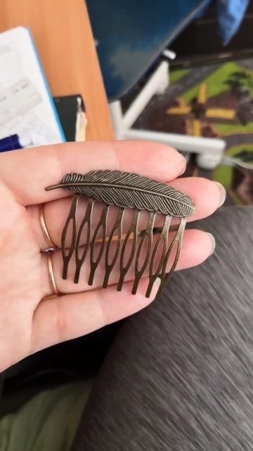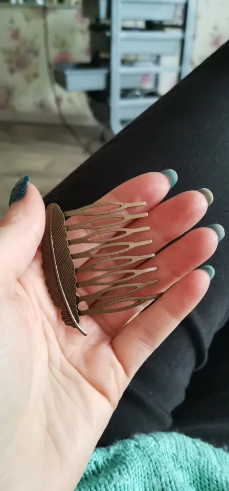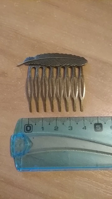 Небольшая гребенка, аккуратно сделанная, материал металл, темновата. Заказала 11 ноября, прибыло 27 декабря.