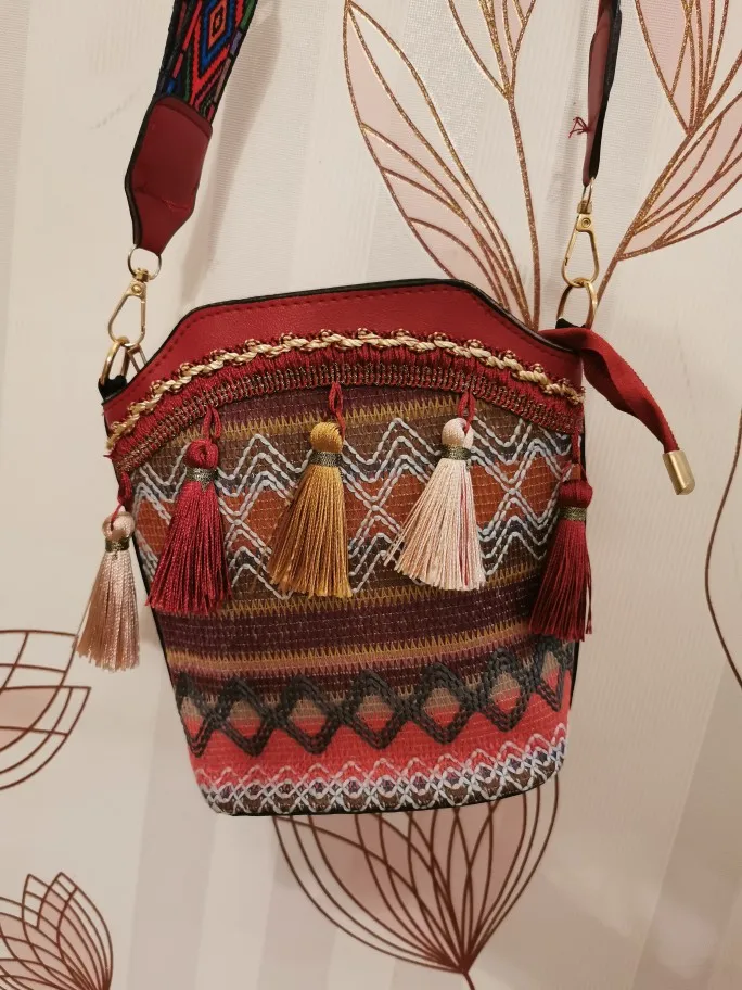 Винтажная женская сумка в национальном стиле, этническая плетеная Сумка через плечо с бахромой, в стиле хиппи, слинг на плечо, маленькая дамская сумочка, 4 цвета