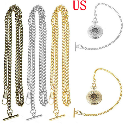 Винтажные карманные часы Альберта цепь пальто, жилет, джинсы цепочки декора металлические звеньевые зажим с Т-образная застежка-краб DIY аксессуары для одежды