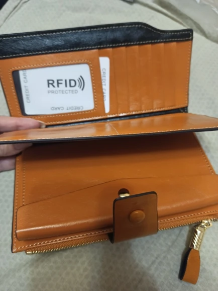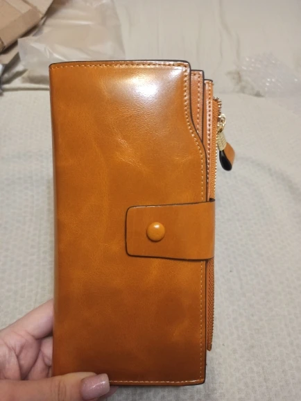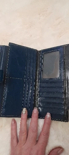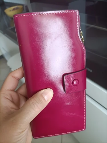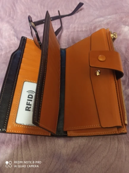 Хороший кошелёк. У нас такой стоил бы более двух тысяч. Очень много ячеек для пластиковых карт. Имеет защиту от считывания карты через кошелёк. При сильной набитости можно застегнуть на другую кнопку, что тоже очень удобно. Доставка быстрая. Упакован был хорошо. Пришёл без повреждений. Понравился.