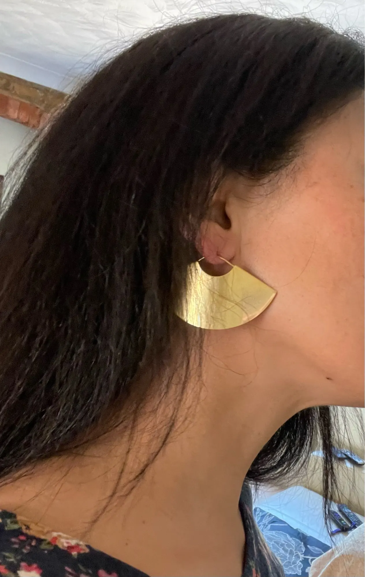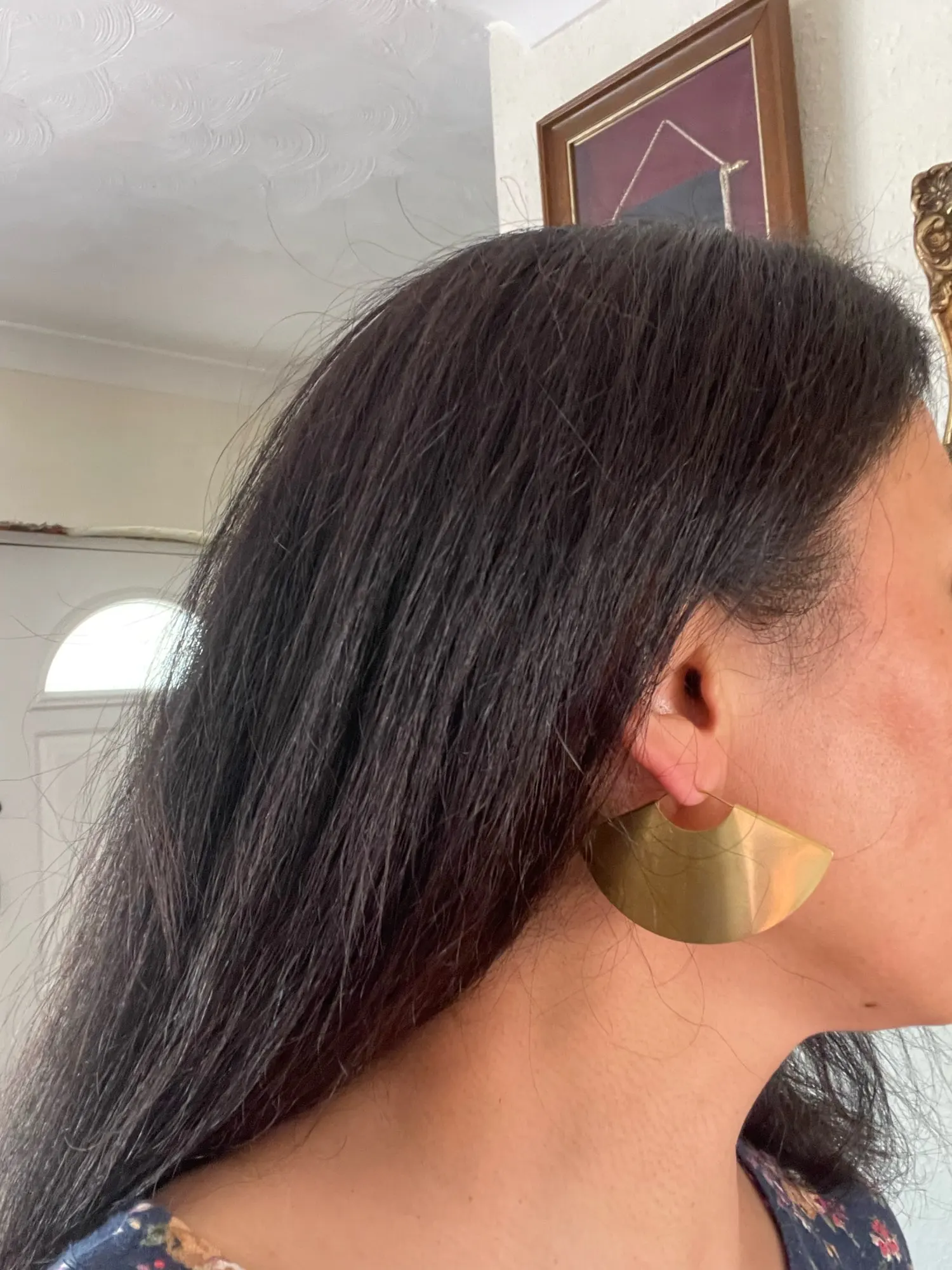 Серьги красивые, соответствуют описанию. Думаю, что выбранный мной цвет - не лучший вариант, в золотистом будет лучше. Конечно лучший вид - это в профиль)