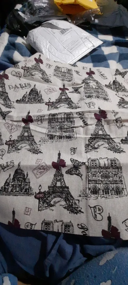 Заказ пришёл в Германию чуть меньше чем за месяц! Тканью довольна, принт очень красивый, пропечатан отменно! Ткань плотная, как мешковина, то что надо! Продавца рекомендую!