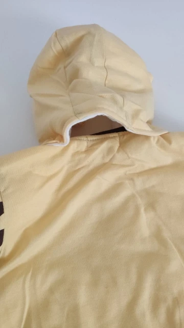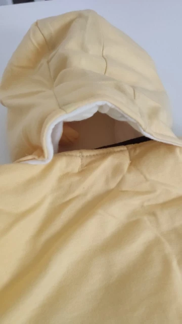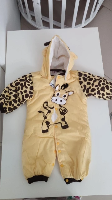 Доставка в Санкт-Петербург за 15 дней. Мягкий, хорошо прошит, кроме капюшона. Как видно на фото, на обратной стороне нет ни дырочки под пуговицу, чтобы прошить самой, но также если сделать самой, то получается капюшон большого размера, чем воротник комбинезона. . Маломерка заказала на 12 месяцев, налезит уже наверно в семь, восемь