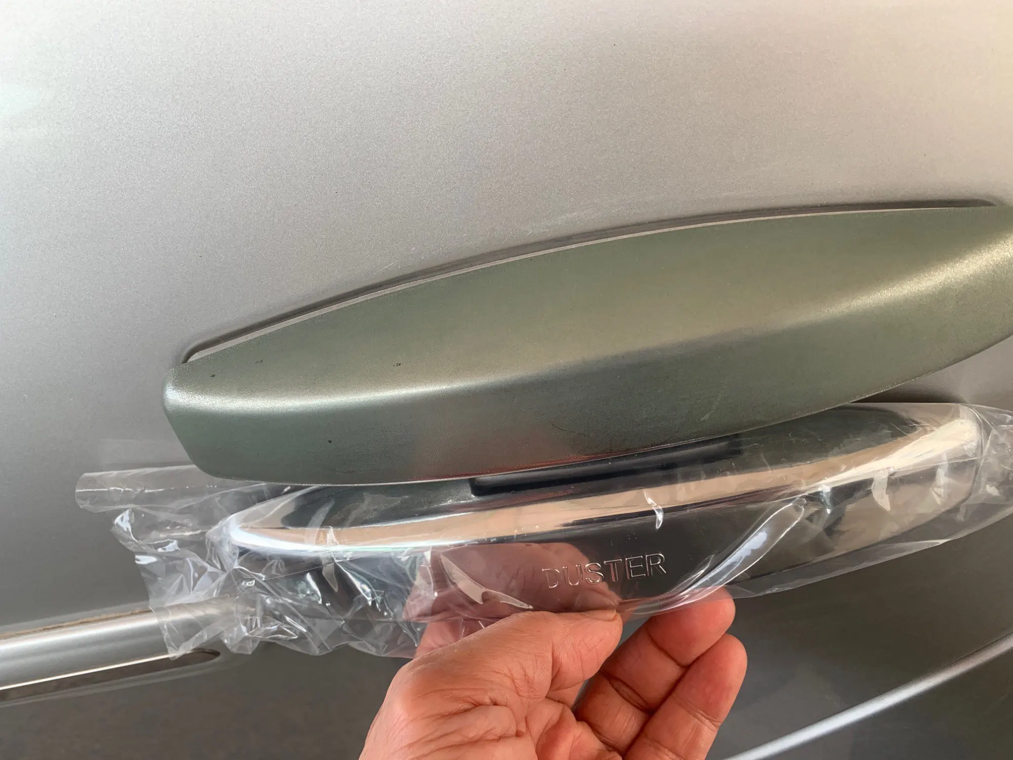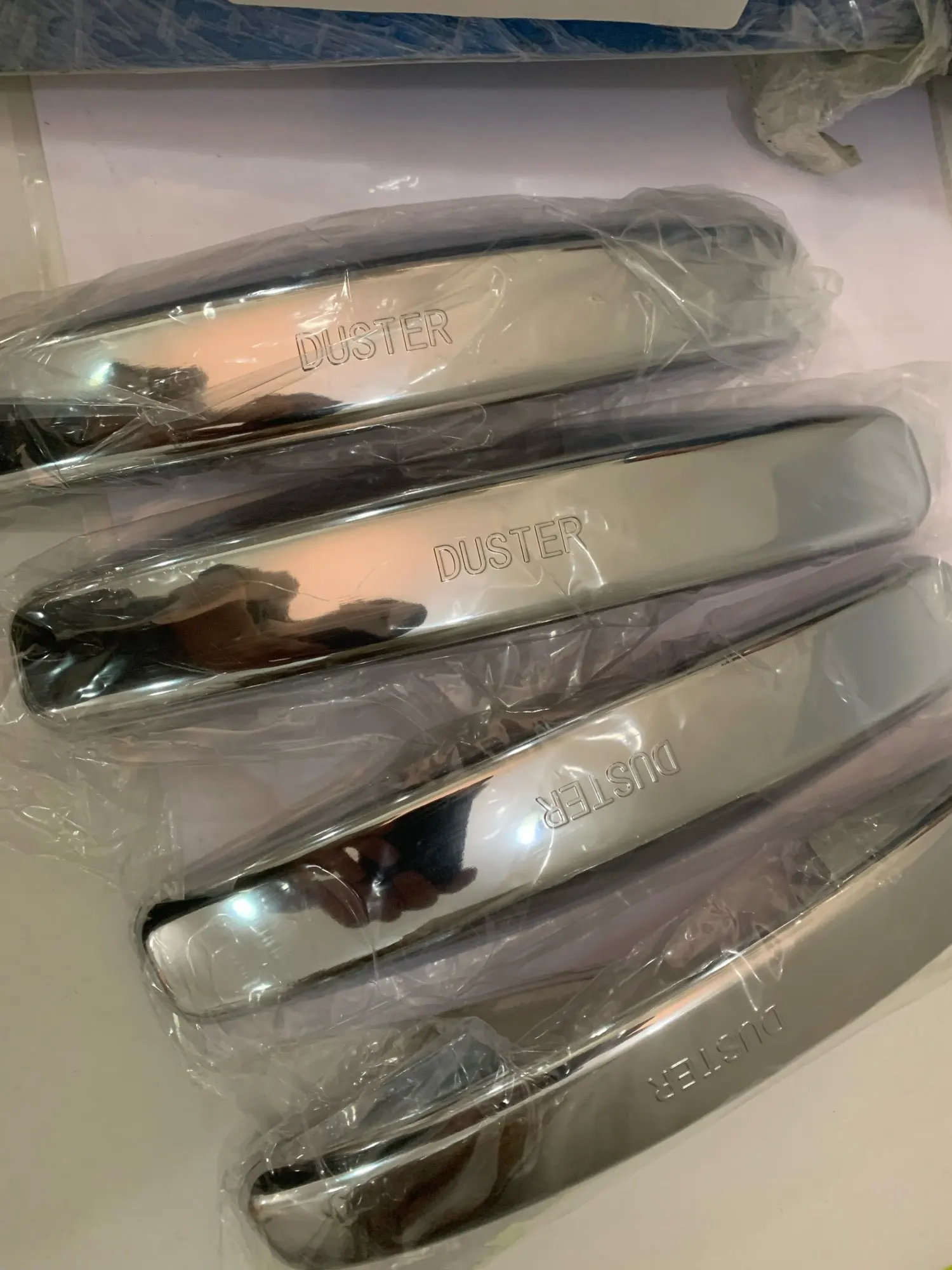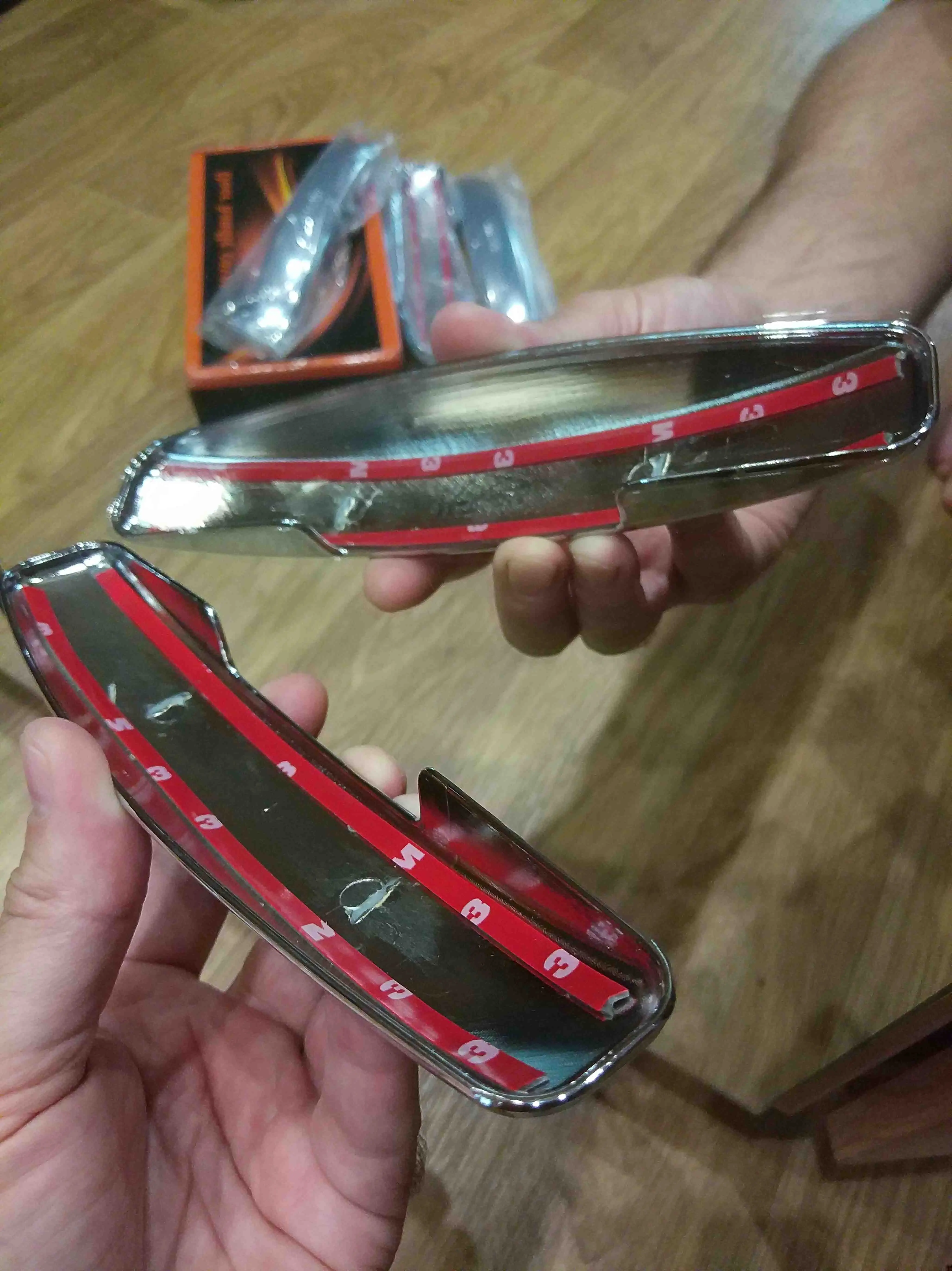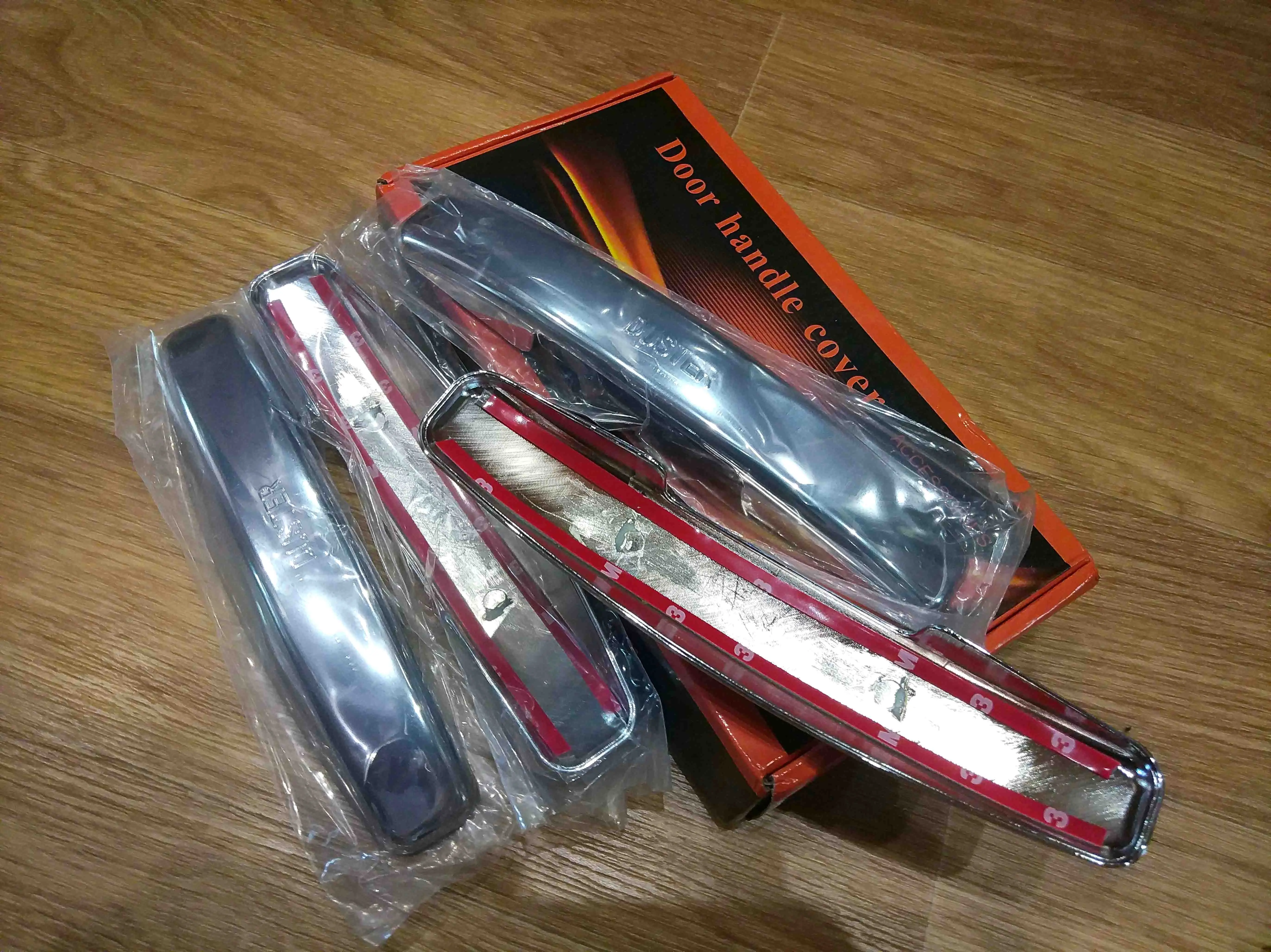 Доставка в Пермь больше месяца. Материал пластик. По размерам идеально подходят. Края покраску не задевают (предыдущие брал металлические - исцарапали краску т.к. по размерам были вплотную к двери). Скотч пожадничали - нужно добавлять дополнительно по центру и на боковушки - иначе отпадут. Сколько покрытие "под эмаль" продержится трудно сказать, но по идее все-равно со временем с пластика сотрется.