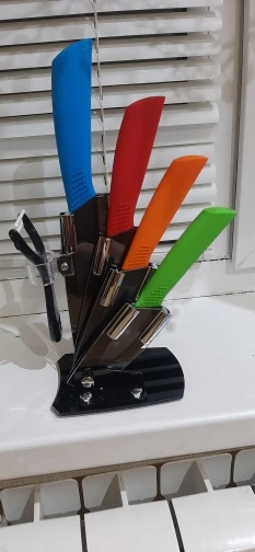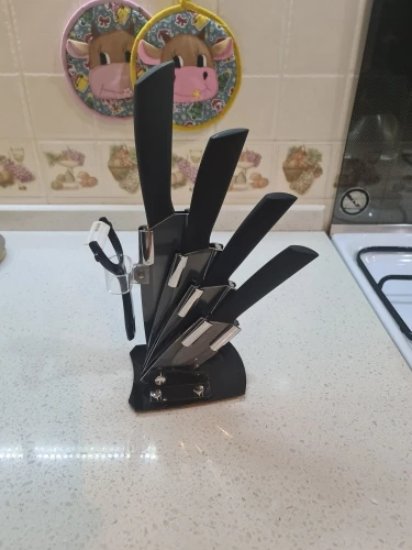 Заказываю уже второй раз, теперь на подарок. Подставкой и ножами довольна, минус только то, что овощечистка не острая, работать с ней сложно, пришлось заменить ее на другую. Быстрая доставка