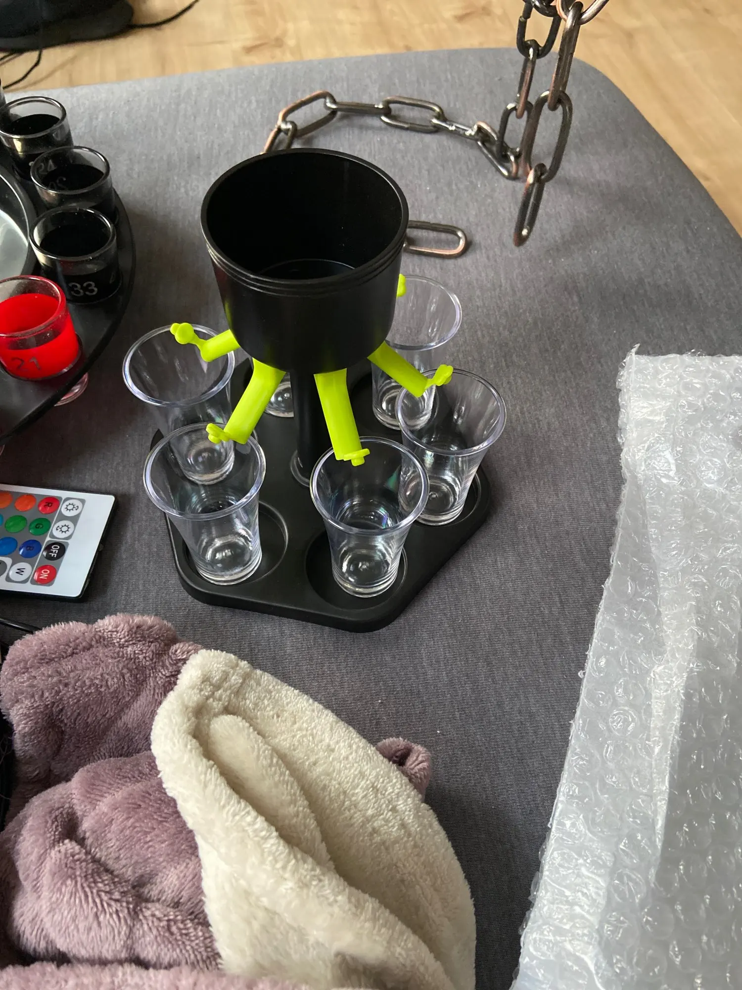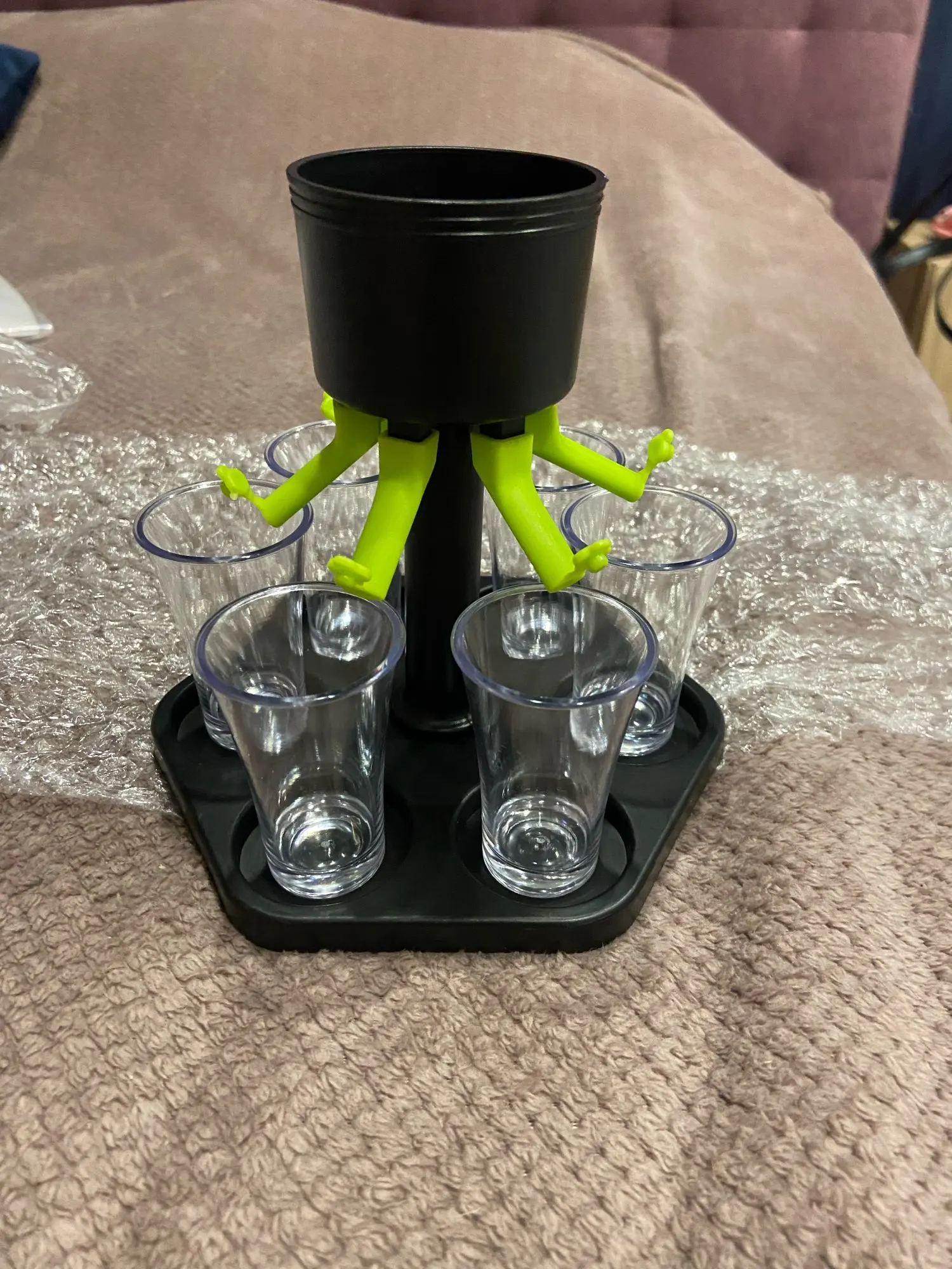 интересная вещь,рюмки пластмассовые,но это не портит впечатление,доставка 22 дня в Литву,спасибо продавцу,успехов