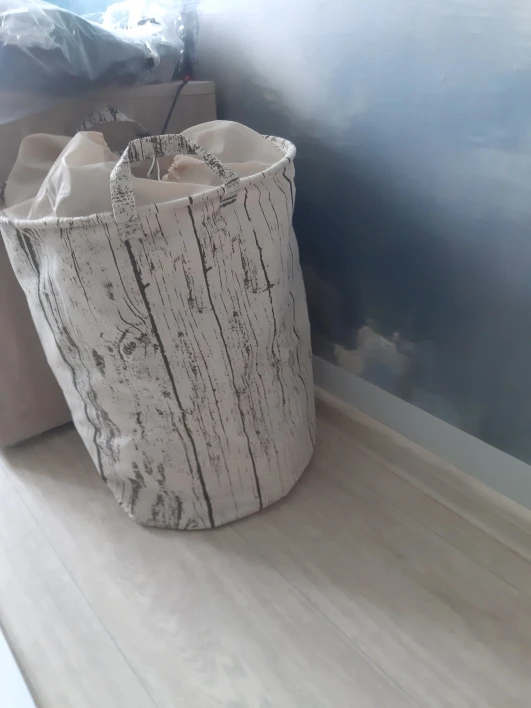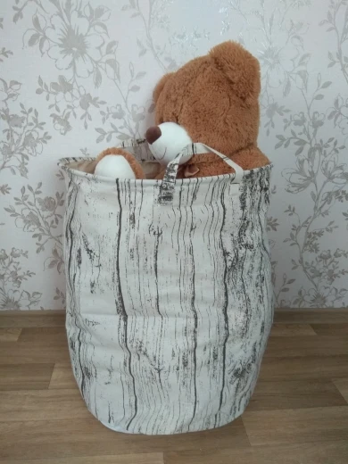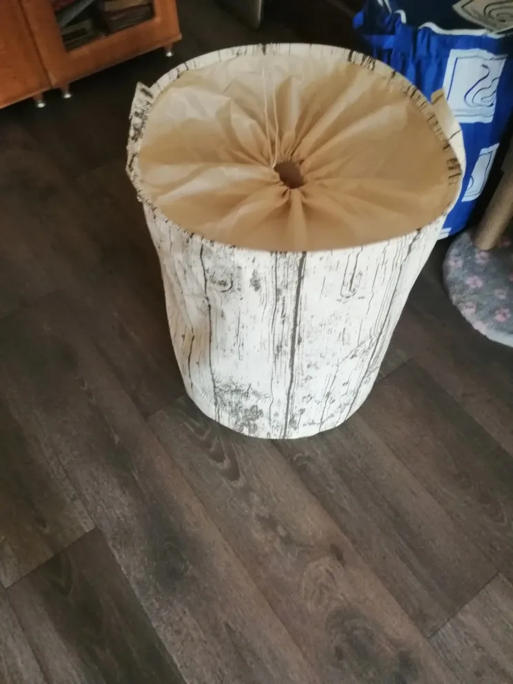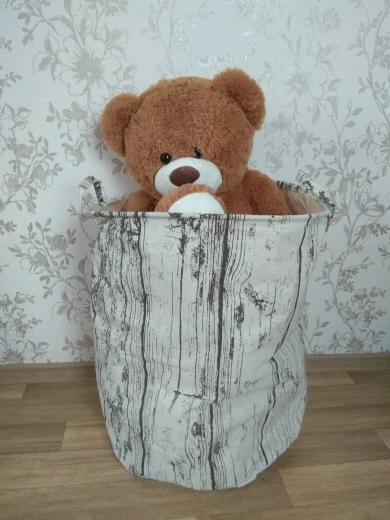 Запах сырости и затхлости, сверху пришит полиэстер желто-коричневого цвета, что не совпадает с цветом самой корзины. Доставка месяц.