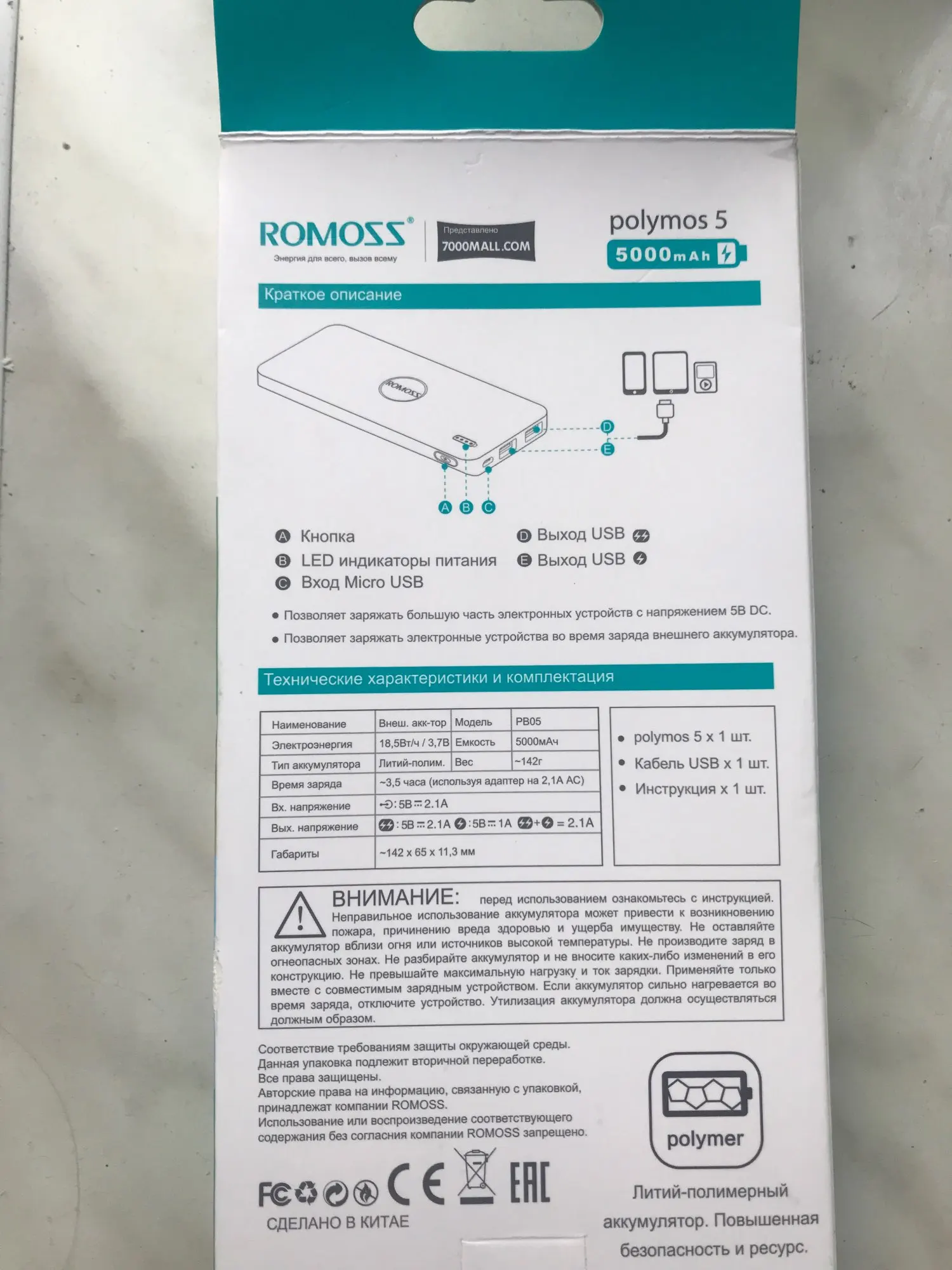 в общем, годная банка. доставка за неделю сдэком. ток зарядки не даёт обещанные 2.1а, в остальном пойдёт, тем более за пятихатку. продавец активный, что не может радовать.