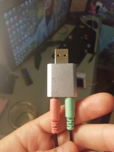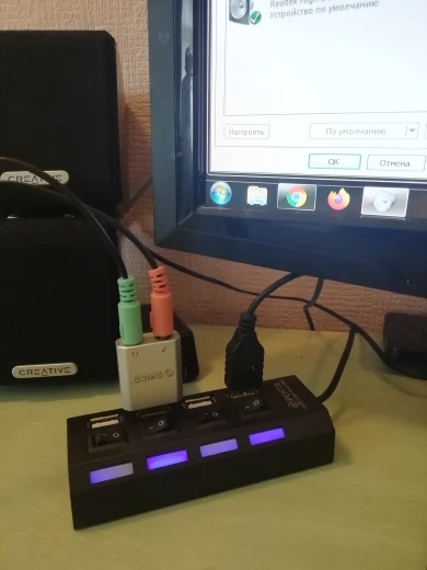 Подключил комп сразу же его определил, звук отображается отлично, насчёт микрофона разъем нужно втыкнуть не доканца и сразу появляется звук.