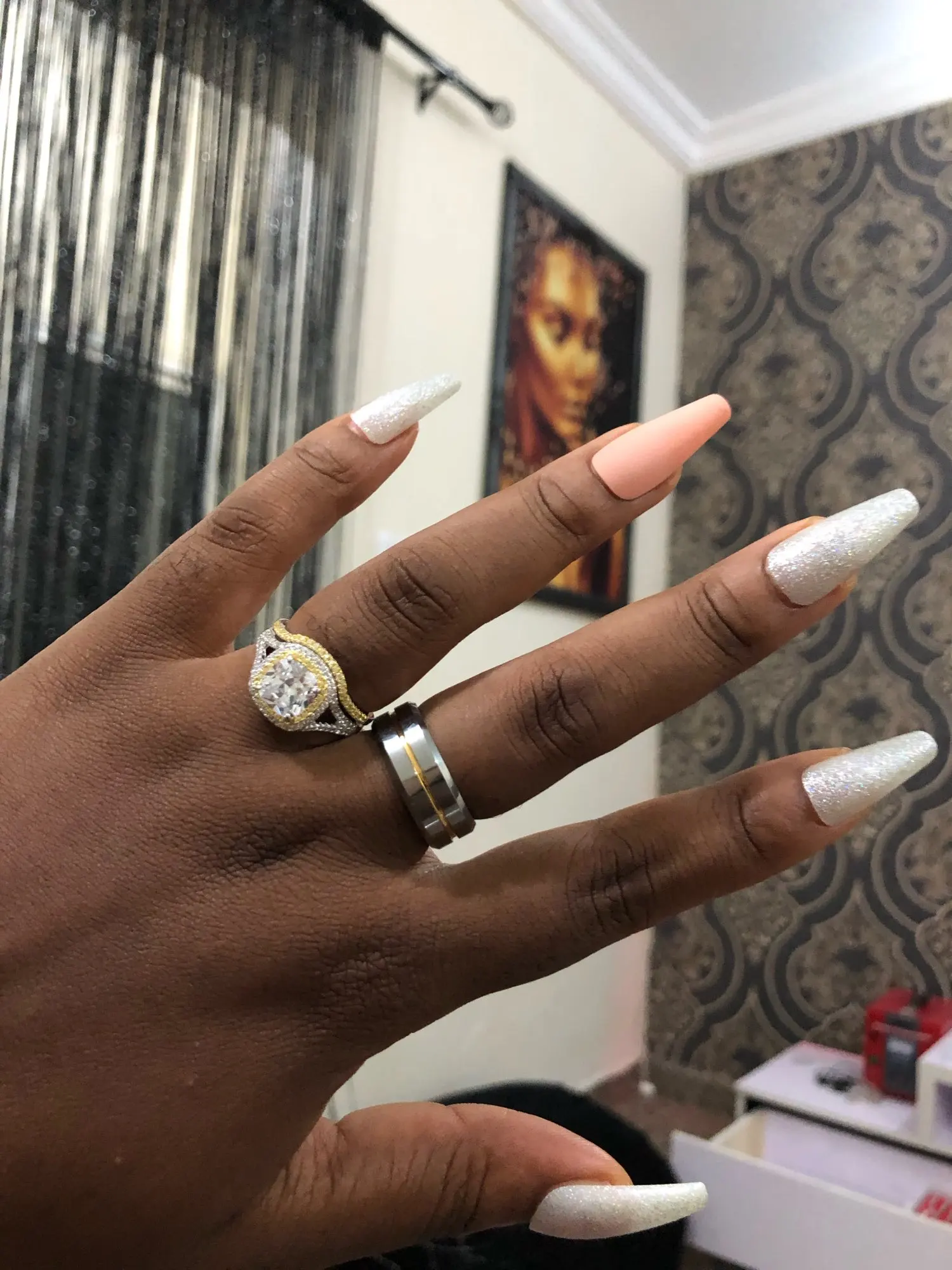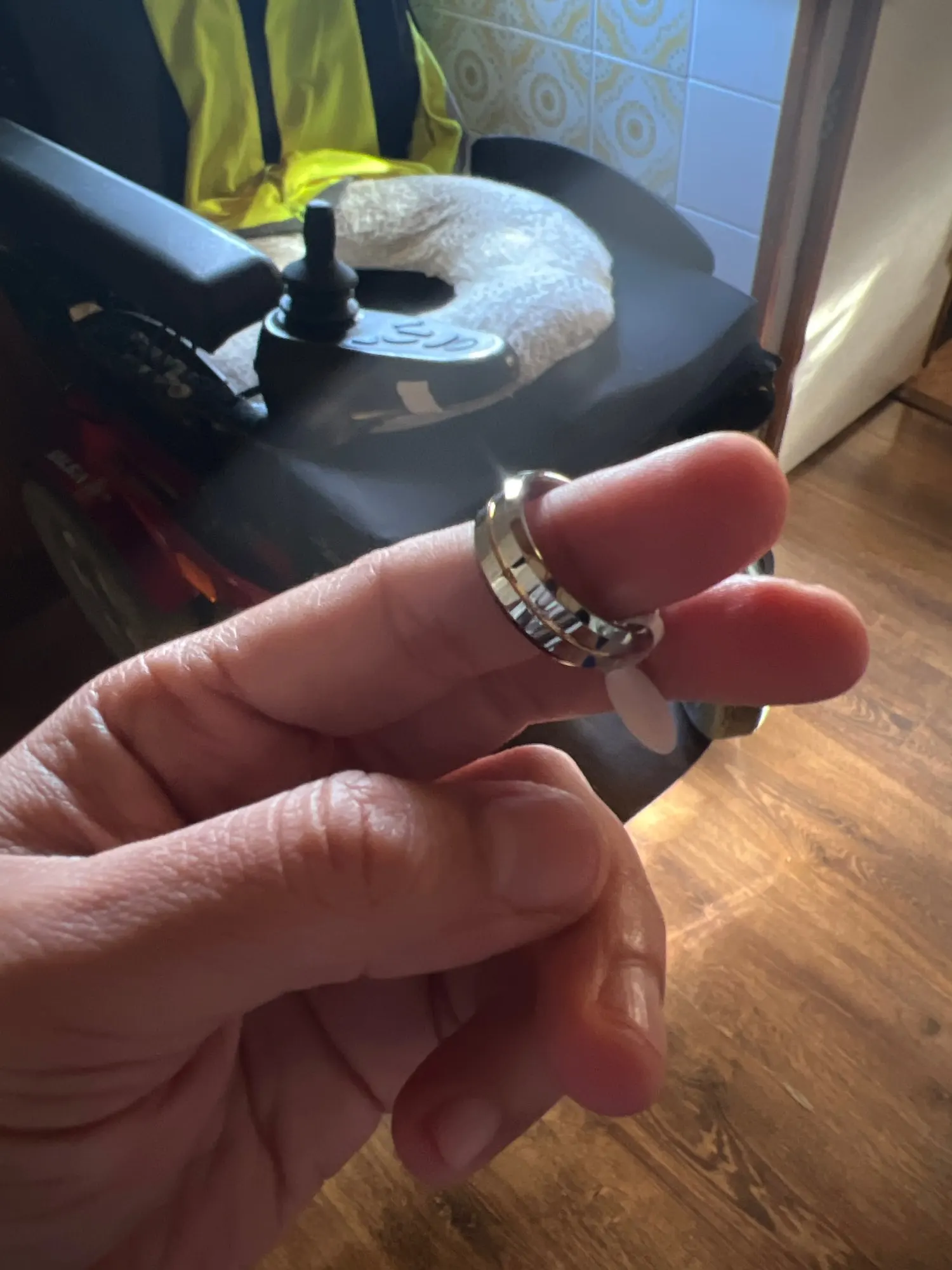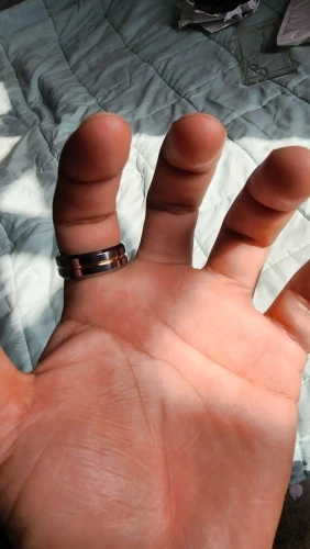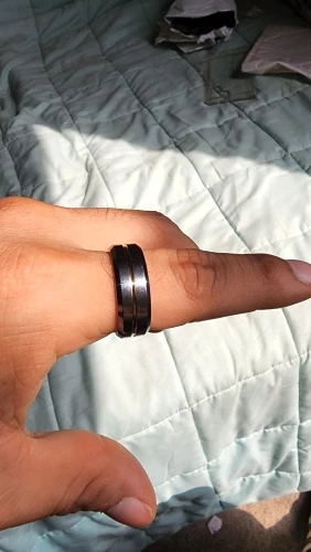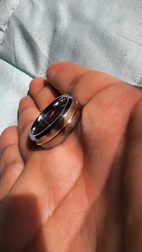 Кольцо внутри имеет круглый край. Диаметр по самому узкому месту чуть больше табличного - 21,6, у краёв и того больше. Если верить таблице, по длине окружности я должен был брать размер 13. Но я взял 12 - и всё равно кольцо немного сползает. Может, потому что тяжёлое. Но с такой формой внутри размер подобрать трудно.