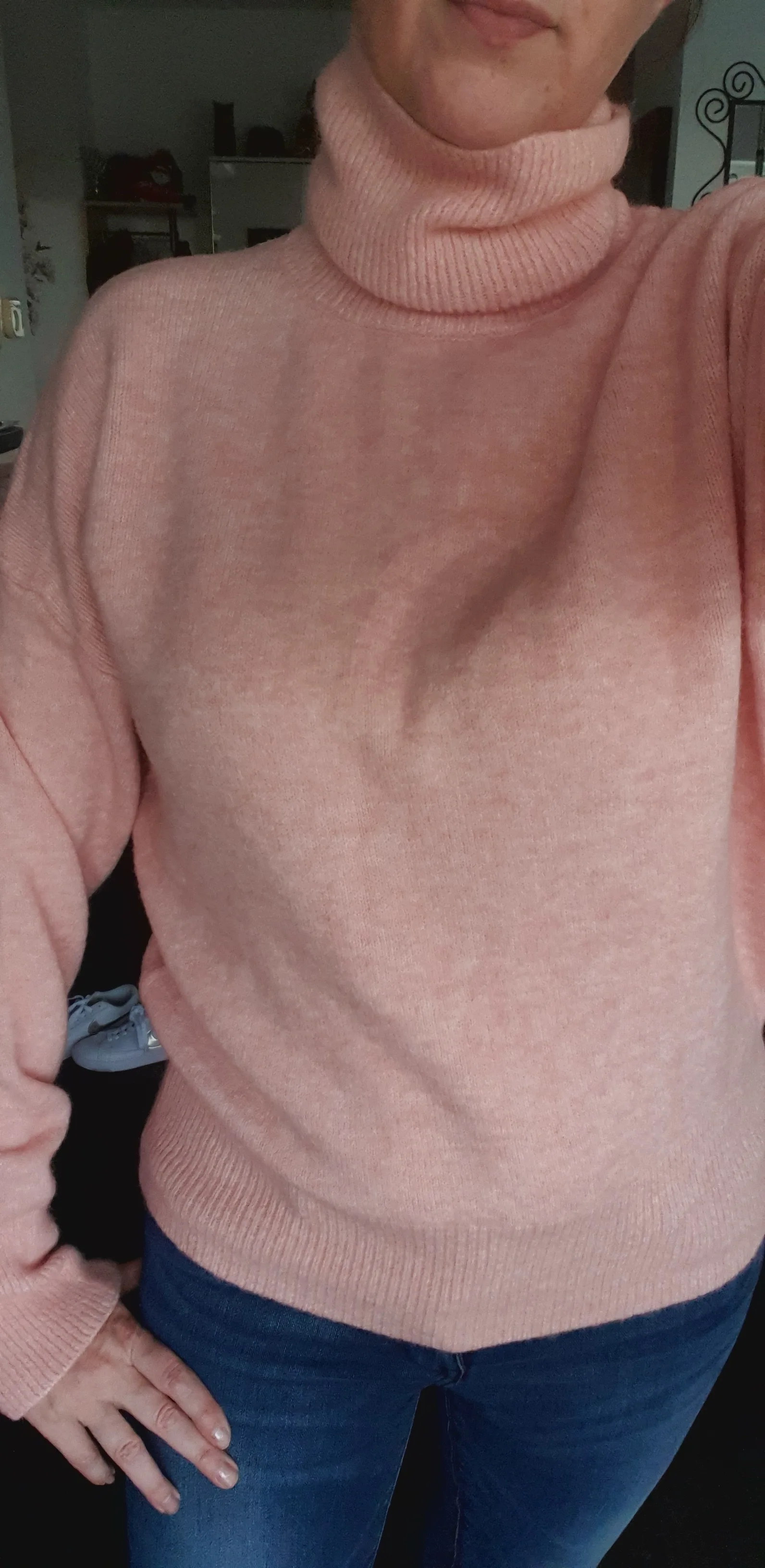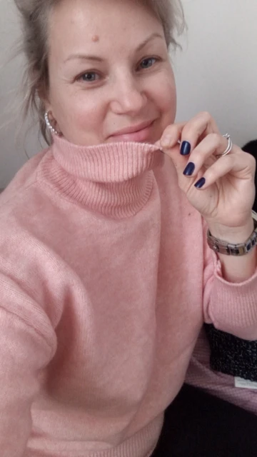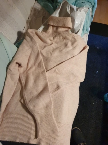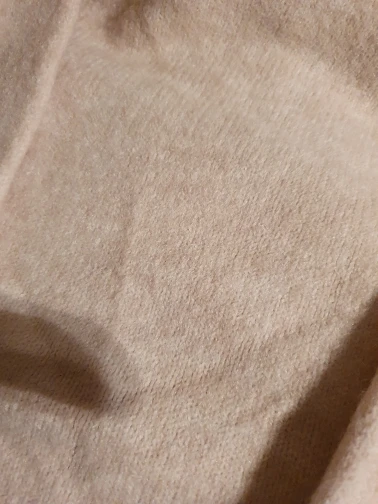 Вязка более плотная и не такой пушистый, как на фото. Пряжа мягкая, не колится
