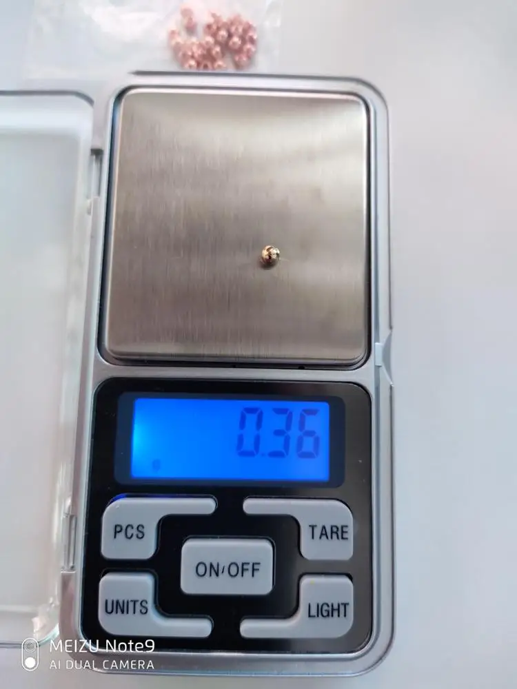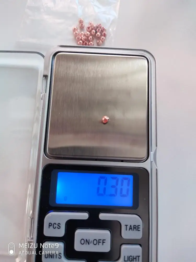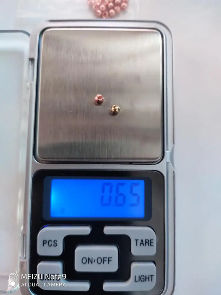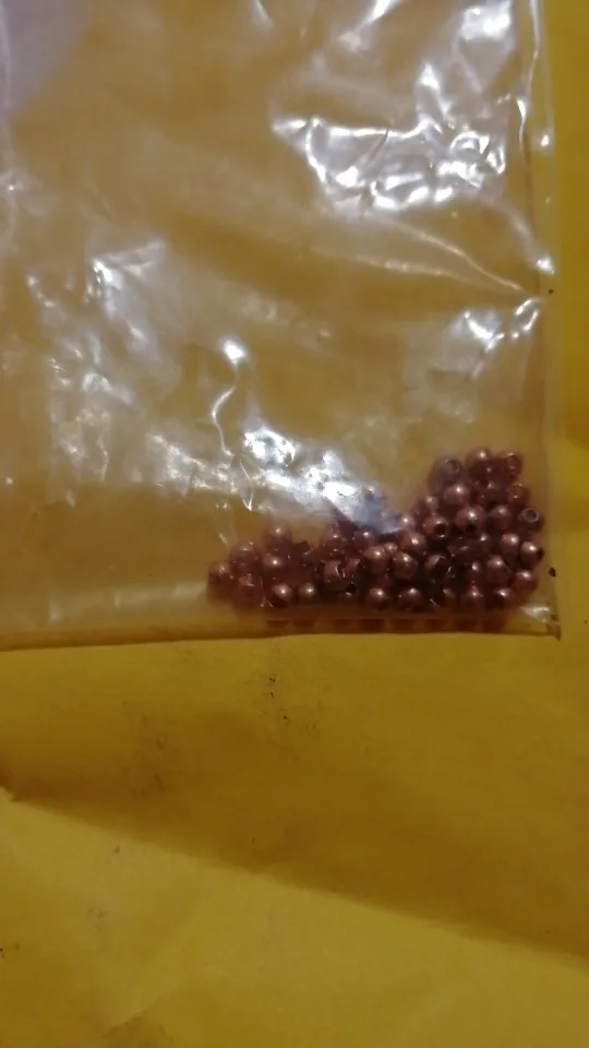 Печаль... Качество бусин отвратительное. 9 бусин имеют темные пятна где нет гальванического покрытия. При диаметре 3,5мм вес всего 0,30грамм. Это самый плохой результат среди заказов у других продавцов. Обычный вес бусин этого диаметра 0,34-0,36 гр. Изготовитель пожалел вольфрамового порошка при спекании . На фото желтая бусина 3,5мм от другого продавца.