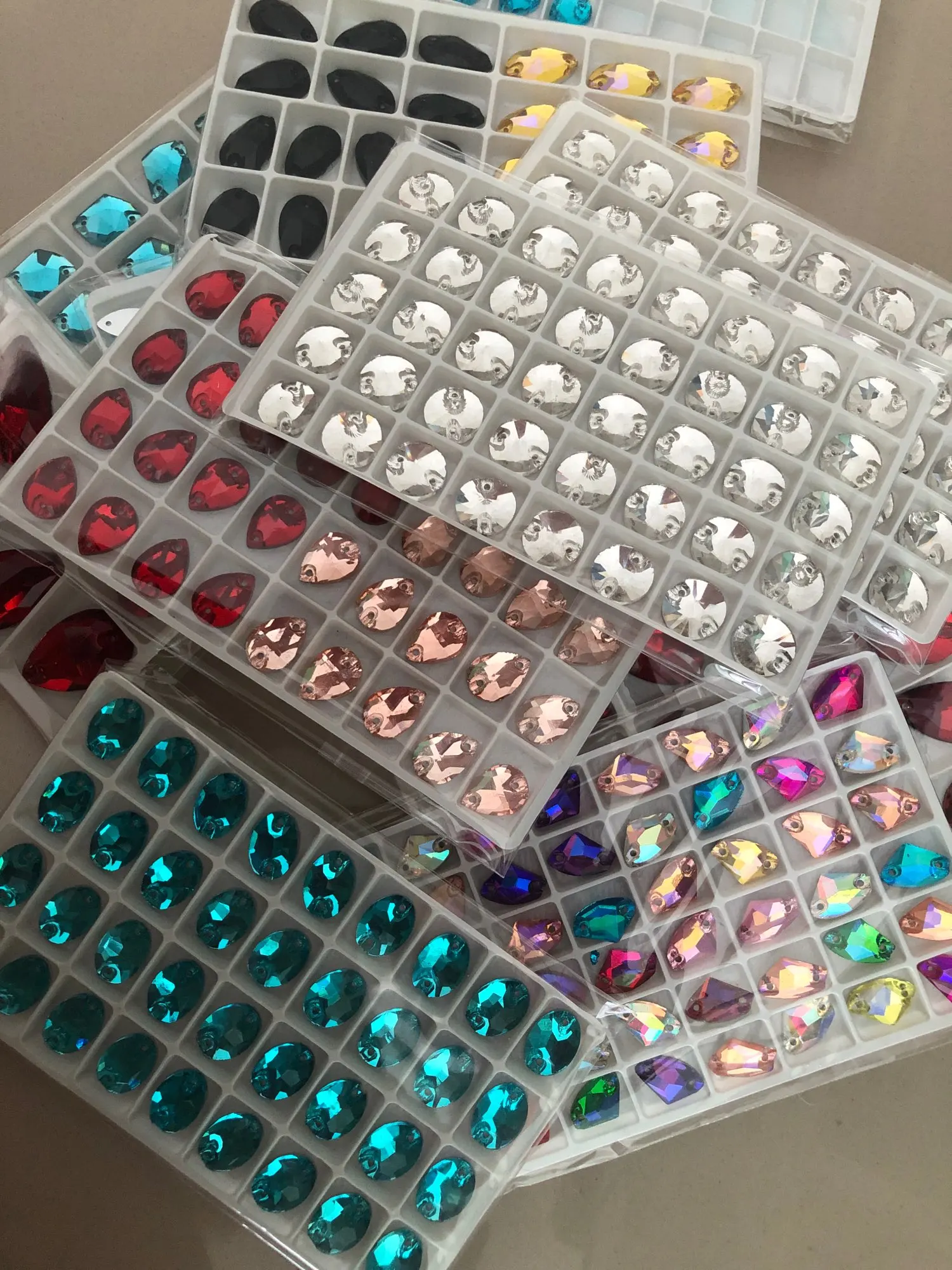Все размеры, все цвета, Стразы ab, Овальные Кристаллы, пришитые на камень, стразы с плоским основанием, шитье для свадебного платья