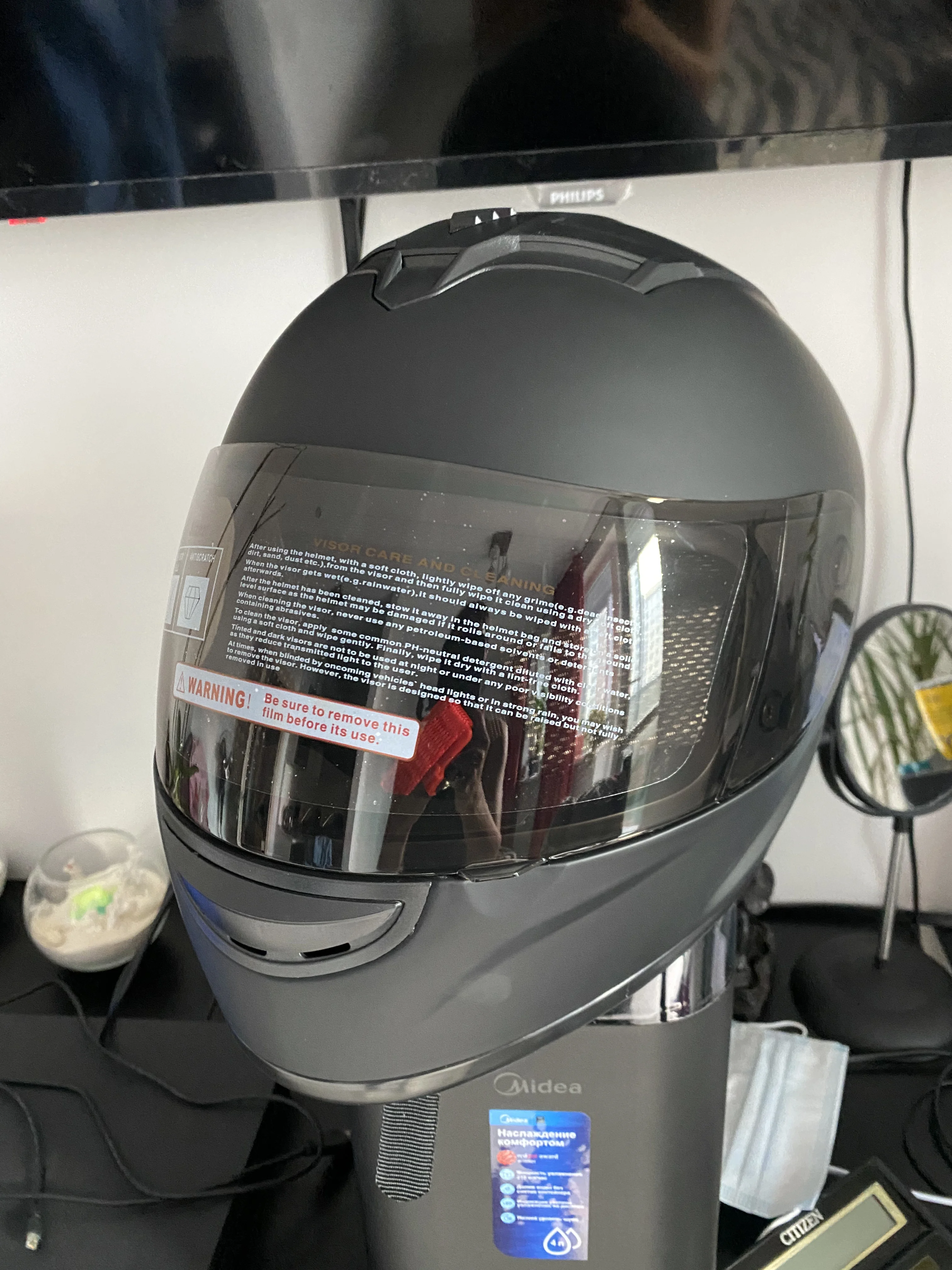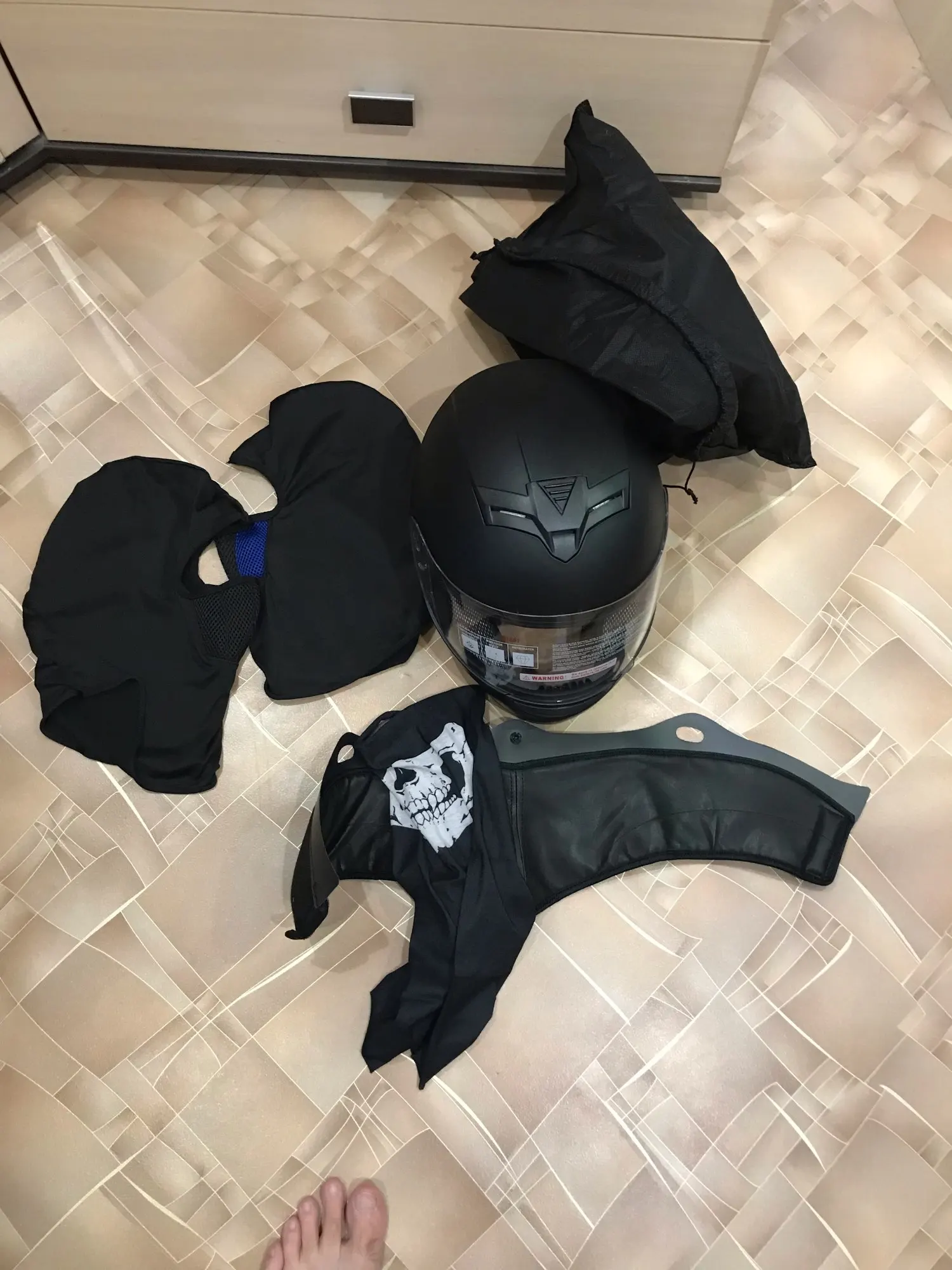дошло быстро,упаковано в плотный воздушный пакет,минус за трещину на воздушной защелке и подтек на визоре,в целом неплохой брал жене на 56 размер,немного великоват,влазиет и моя 58-59 размер очень плотно,снимать с моей плохо,есть маска носок и под шею хрень какая то