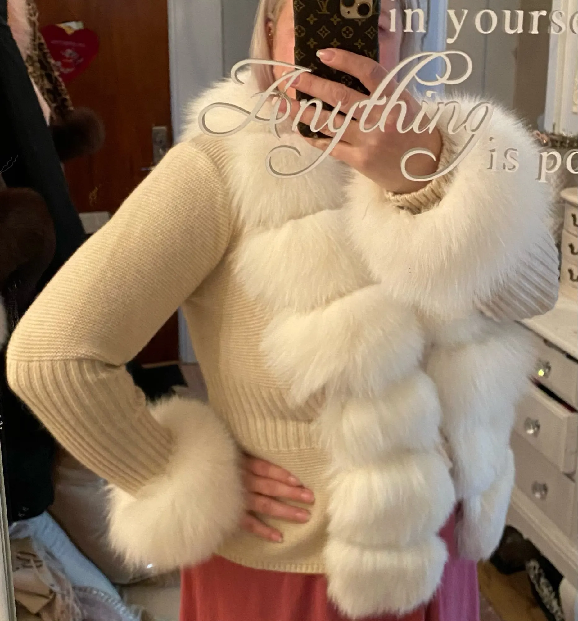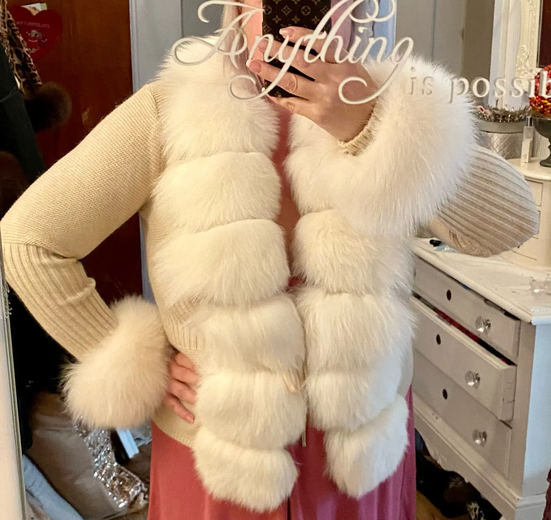 доставка супер быстрая за 5 дней,покупкой довольна кофта супер,мех настоящий! продавец умничка всегда был на связи,однозначно еще что то куплю в его магазине!!!