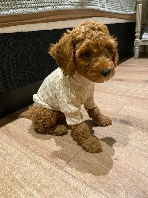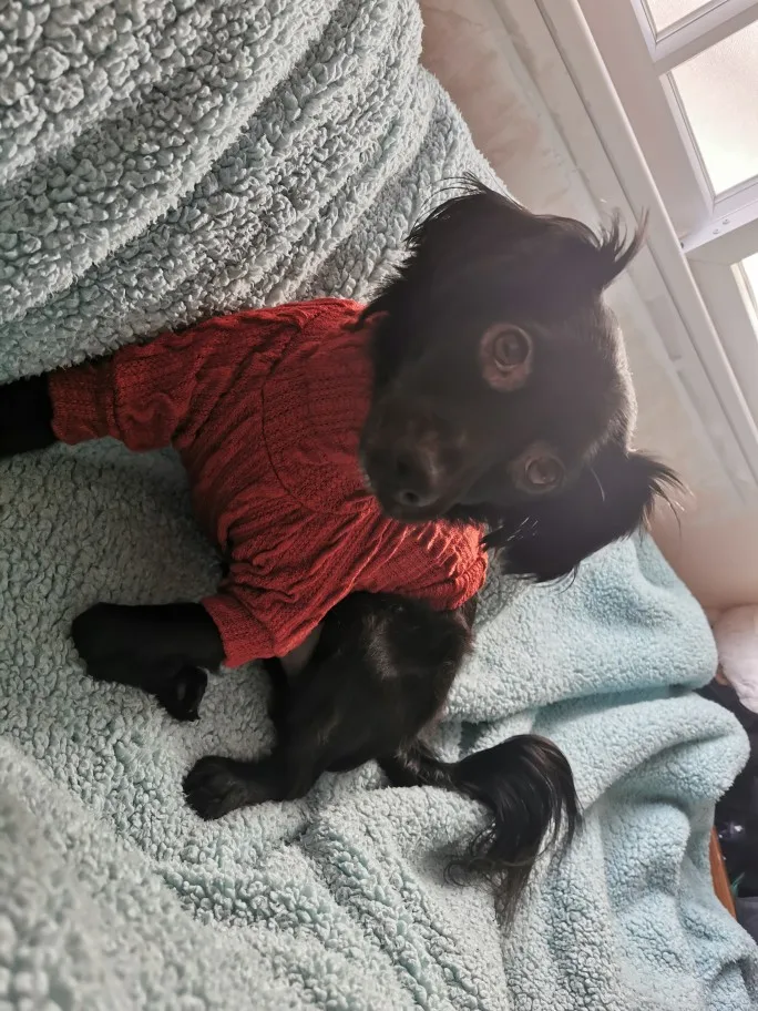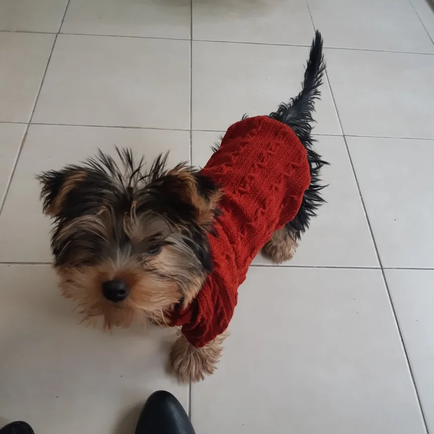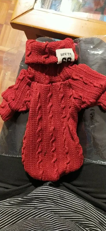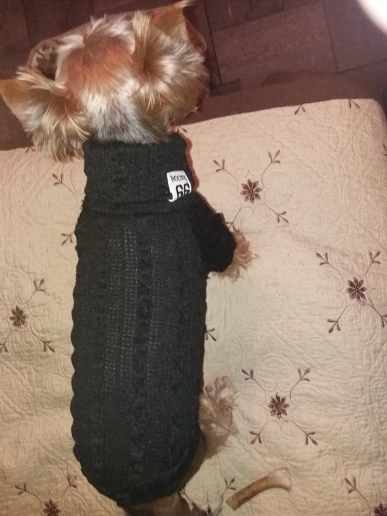 22 февраля заказ - 23 марта во Владивостоке. Заказ пришел с Латвии. Качество хорошее, тонкий трикотаж, ворот двойной. На чихуахуа 4,5 месяца, 950 гр - свитер большеват, на вырост (длинный и широкий в груди. где лапы). Размер XS. цвет больше верблюжий, чем слоновая кость.