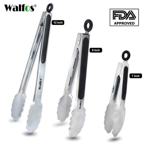 WALFOS Non-Stick BBQ Grilling Tong Salad Serving Food Tong Stainless Steel Metal Kitchen Tongs Barbecue Cooking Locking Tong