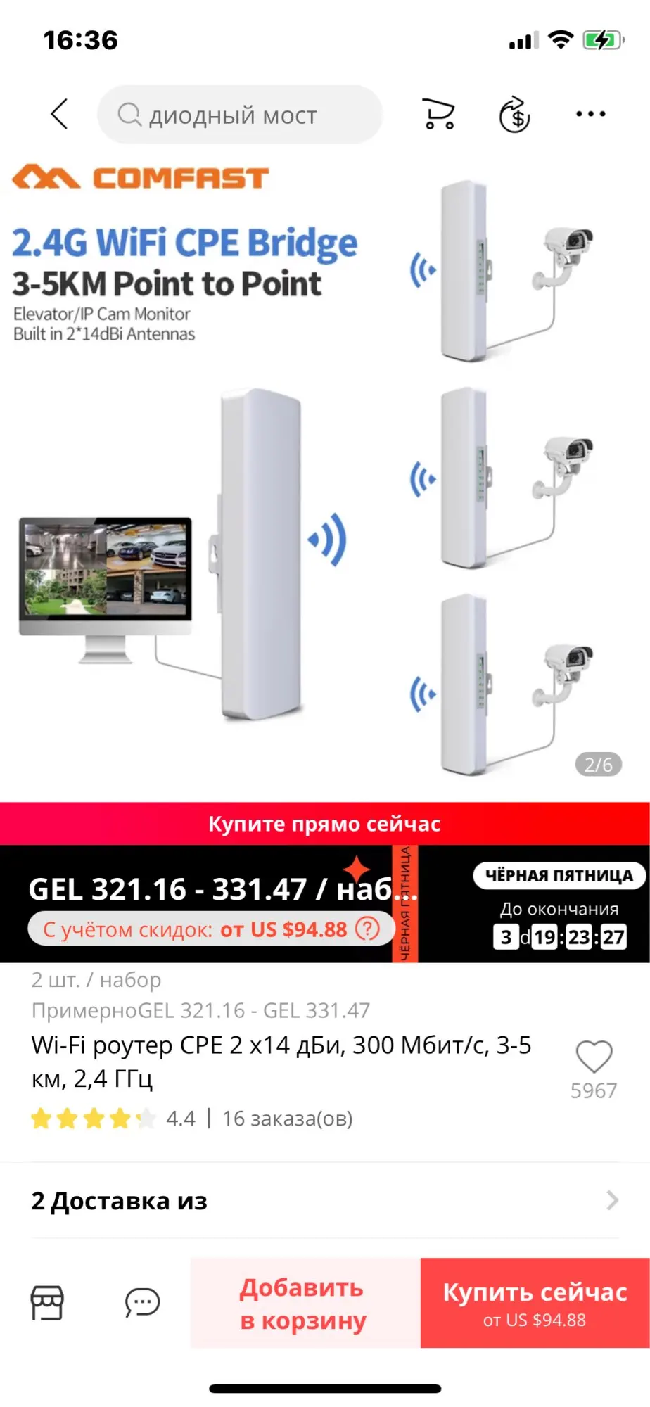 Подключил, работает на 400 метров в прямой видимости, из четырёх делений три показывает. Доставка быстрая, дней пять до мск.