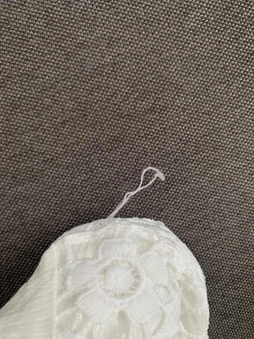 На 44 российский взяла М. Кое где торчат ниточки, не страшно. Очень приятное к телу. Мне очень понравилось.