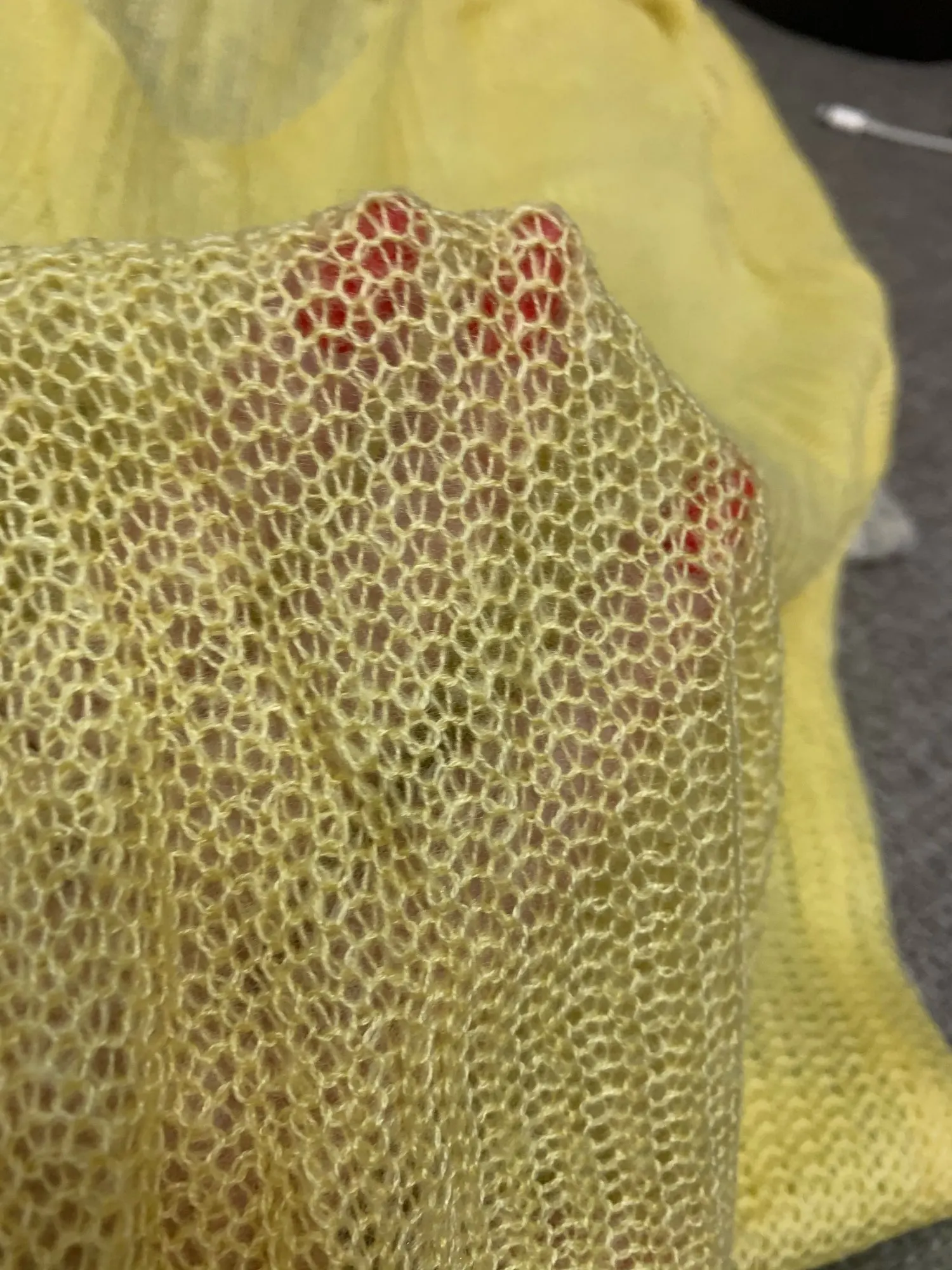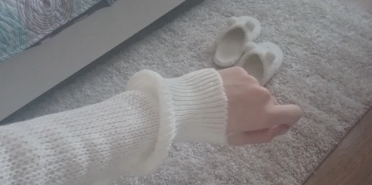 не понравился, совсем не пушистый, неприятная ткань, колючий. рукава узкие, сама прозрачная, цвет желтоватый