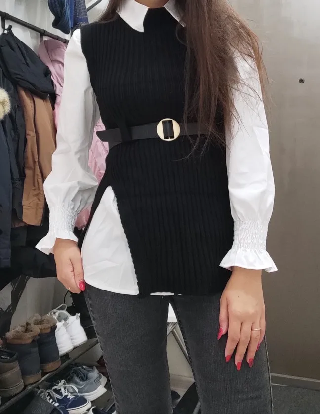 Woherb 2022 в Корейском стиле; Сезон весна-осень; Женские вязаные Жилеты Пуловеры + белая блузка на каждый день с поясом, костюм из двух частей комплект Conjuntos Mujer