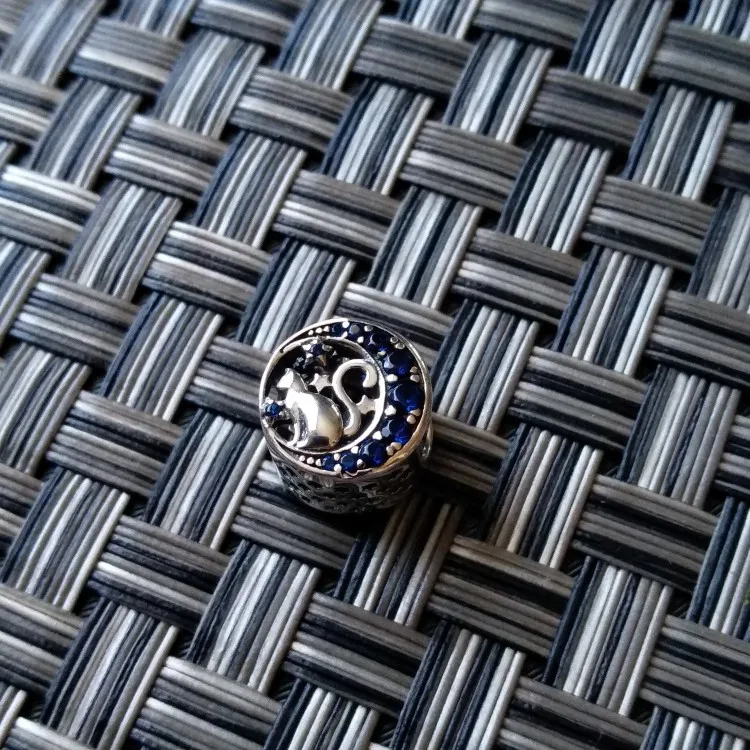 WOSTU Moon & Star милые бусины кошка из стерлингового серебра 925 пробы, с голубой эмалированной подвеской, подходит к оригинальному браслету «сделай сам», для изготовления ювелирных изделий CQC1204