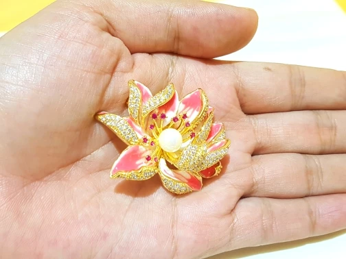 Wuli & baby, новинка, Медные Броши в форме цветка лотоса, цветок с искусственным жемчугом, Свадебная и праздничная роскошная брошь, булавки, подар...