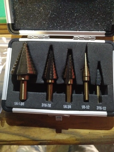 пришло в алюминиевом кейсе, можно даже покупать в подарок. но только для работ по дереву и алюминию. и то обязательно при сверленни алюминия чтобы быстро не перегреть заход сверла нужно подавать охлаждающую жидкость.