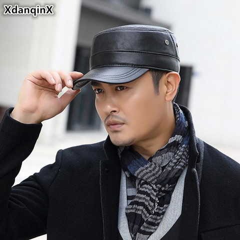 XdanqinX 2022 Осень-Зима мужская плоская кепка шапки из натуральной кожи теплая армейская военная шапка Снэпбэк Кепка кожаные кепки регулируемог...