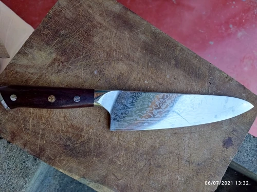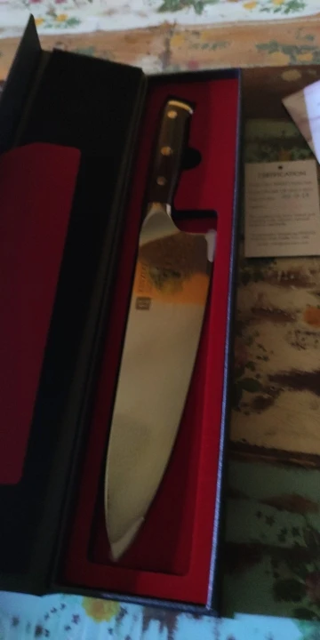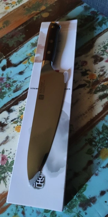 Красивый и удобный нож шеф-повара. Удобная рукоятка, плавные спуски у клинка. Оформление - полировка, отделка, паспорт изделия, подарочная коробка, маркировка на клинке- действительно лакшери. Попробую в деле - самое главное насколько удобно резать. Но уже хочу заказать ещё один нож, другого типа.