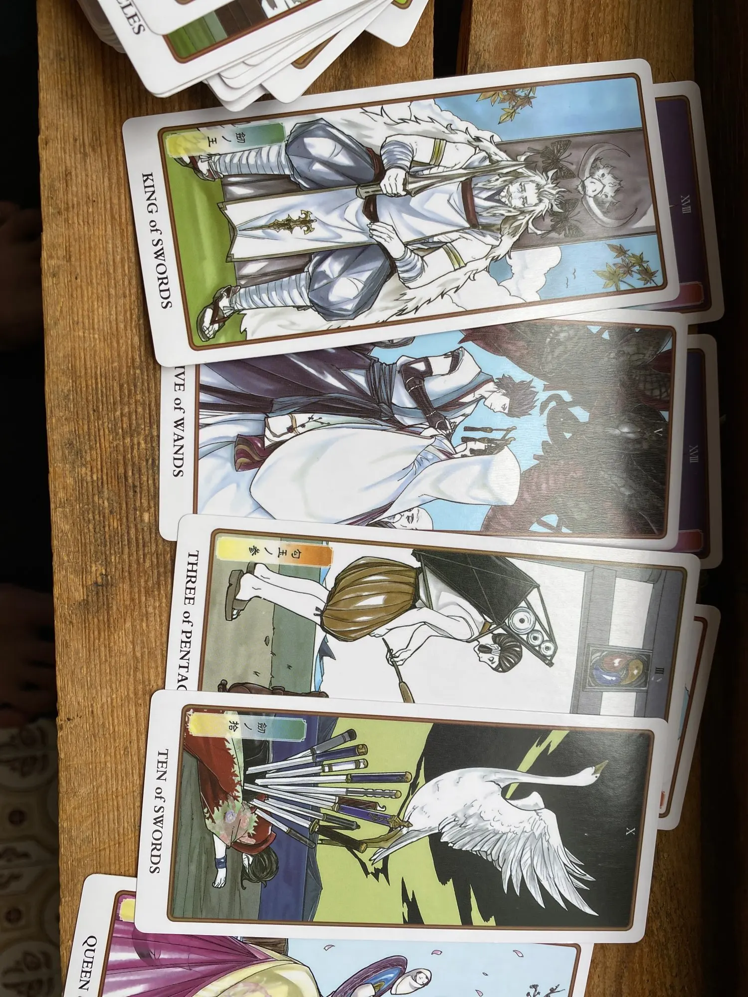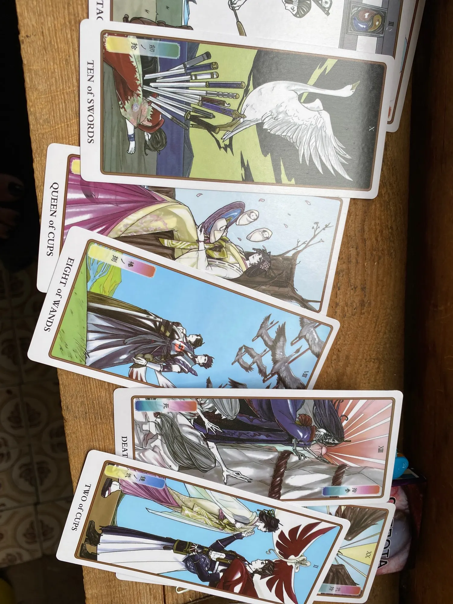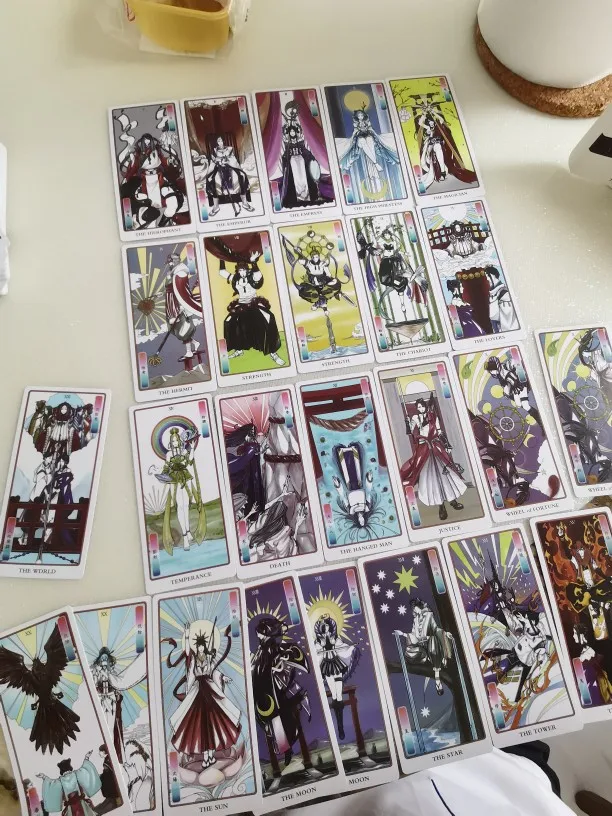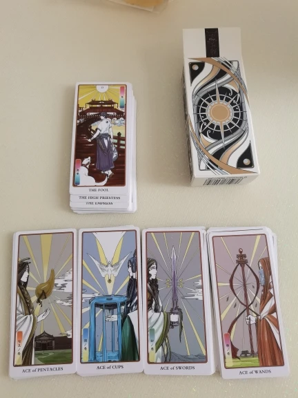 Карты просто великолепны. Приятны на ощупь. Хорошая вырубка. Сами изображения немного не привычны, но передают классический смысл Уэйта. В колоде есть приятные неожиданности: две кар ты Силы, две карты Луны. Но маленькой белой книжечки нет даже на английском. Я очень довольна своей покупкой.