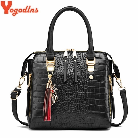 Yogodlns модная сумка с узором «крокодиловая кожа» Для женщин 2022 новая сумка на плечо из искусственной кожи с кисточками роскошный дизайн сумка с ручкой Дамский кошелек sac
