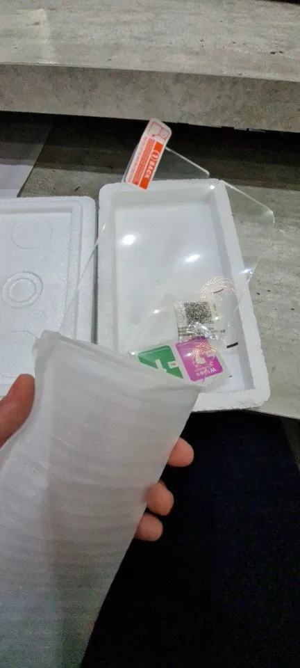 Стекло приклеил, легло не плотно, т.к. Были соринки по краям под пленкой