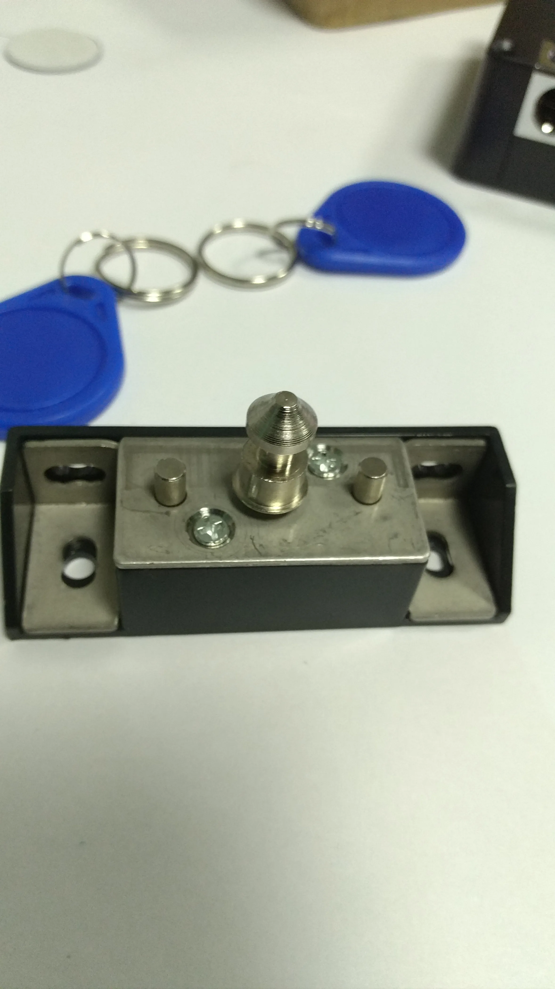 Короче отличная штука, работает хорошо. внутри сделано добротно. всё пропаяно и отмыто от флюса. на провод внешнего питания подаётся 5в от внешнего БП. внутри на этот провод есть диод, однако если совсем дохлые батарейки -они будут грузиться на бп и могут потечь. поэтому постоянно бп нельзя оставлять Карточки привязываются через мастер карту. если открыл замок мастером, в течении 5 сек прикладываешь другие карты и они становятся рабочими. сбросить можно кнопкой ресета. в этом случае привязывается 1 карта которая становится мастером. остальные привязываются после мастера.
