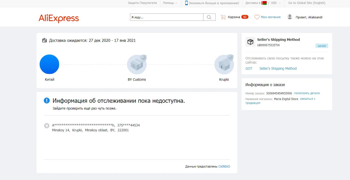Рейтинг Aliexpress:
