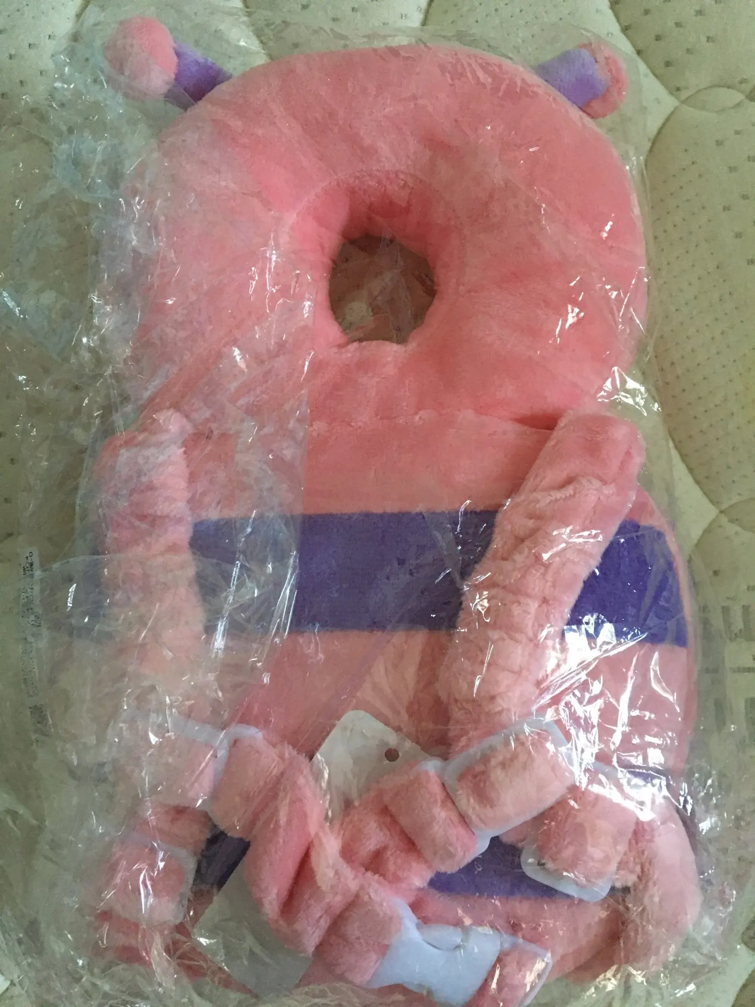 Подушечка хорошего качества, очень милая, пришла не помятой, после стирки качество не изменилось. Малышке нравится играть, но по назначению кажется использовать не будем, не нравится, что что-то за спиной.
