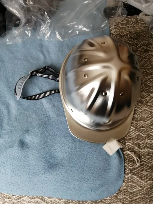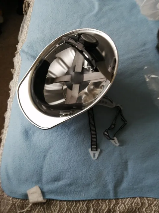 Четкая каска, очень прочная. Она вообще не ломается и не раскалывется как пластиковые, только гнется. Есть особенности - это тип С (це) - не обеспечивает защиту от поражений электрическим током, в отличие от типов А и В. Так что использовать там, где есть такая возможность - нельзя. Крепеж ремней, сама пластиковая обечайка и ремни кажутся хлипкими. Храповой механизм есть, но так себе качество...