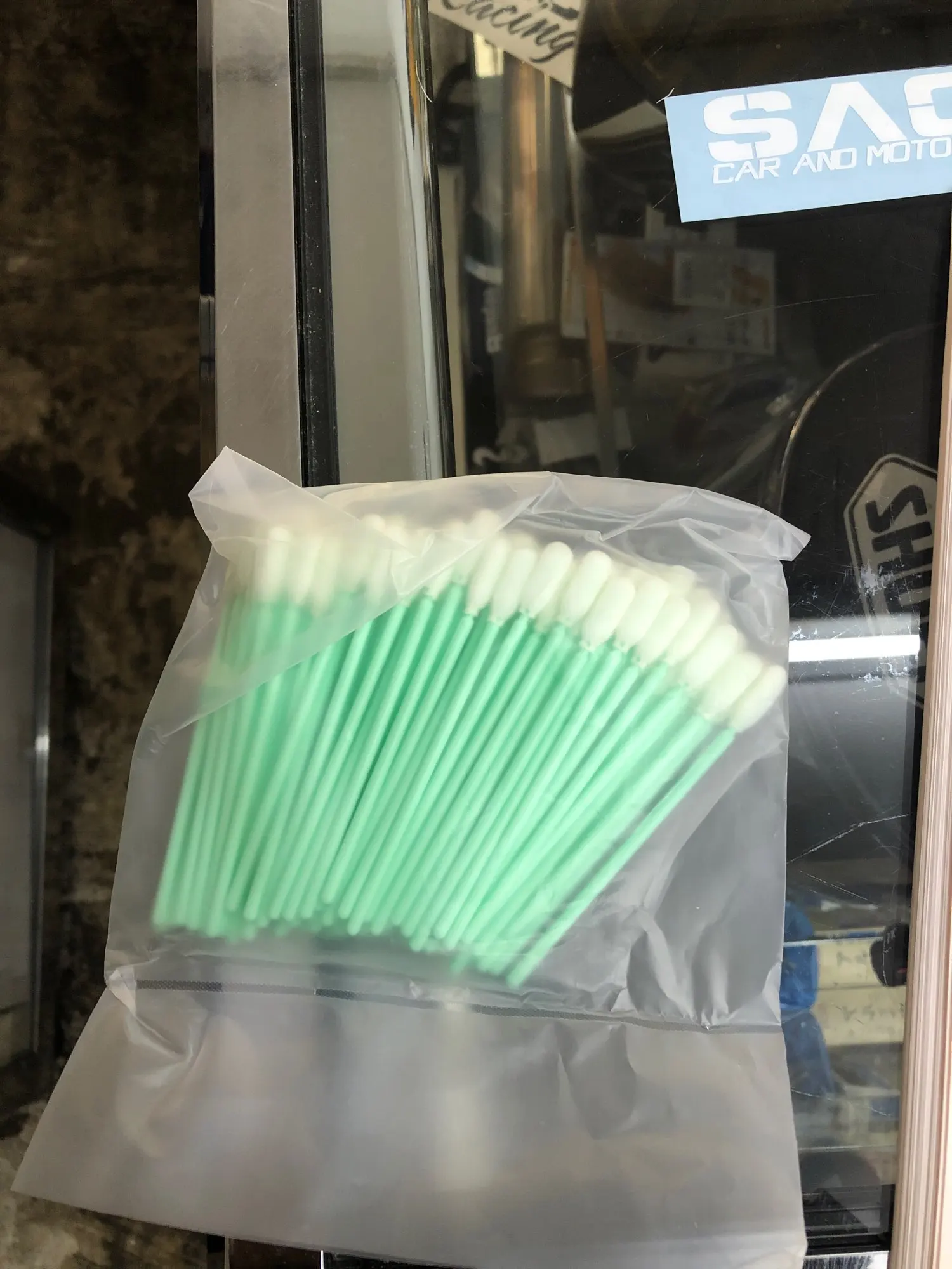 Хорошие не-ватные палочки для отчистки плат от закисей и флюса. Вместо ваты там эдакая пенная мочалочка на каждой палочке, отлично забирает в себя загрязнения, отмытые изопропиловым спиртом. К сожалению, держится на палочке не очень хорошо (приклеена только снизу, видимо), поэтому уже через пару интенсивных "трений" нужно выкидывать и брать новую)