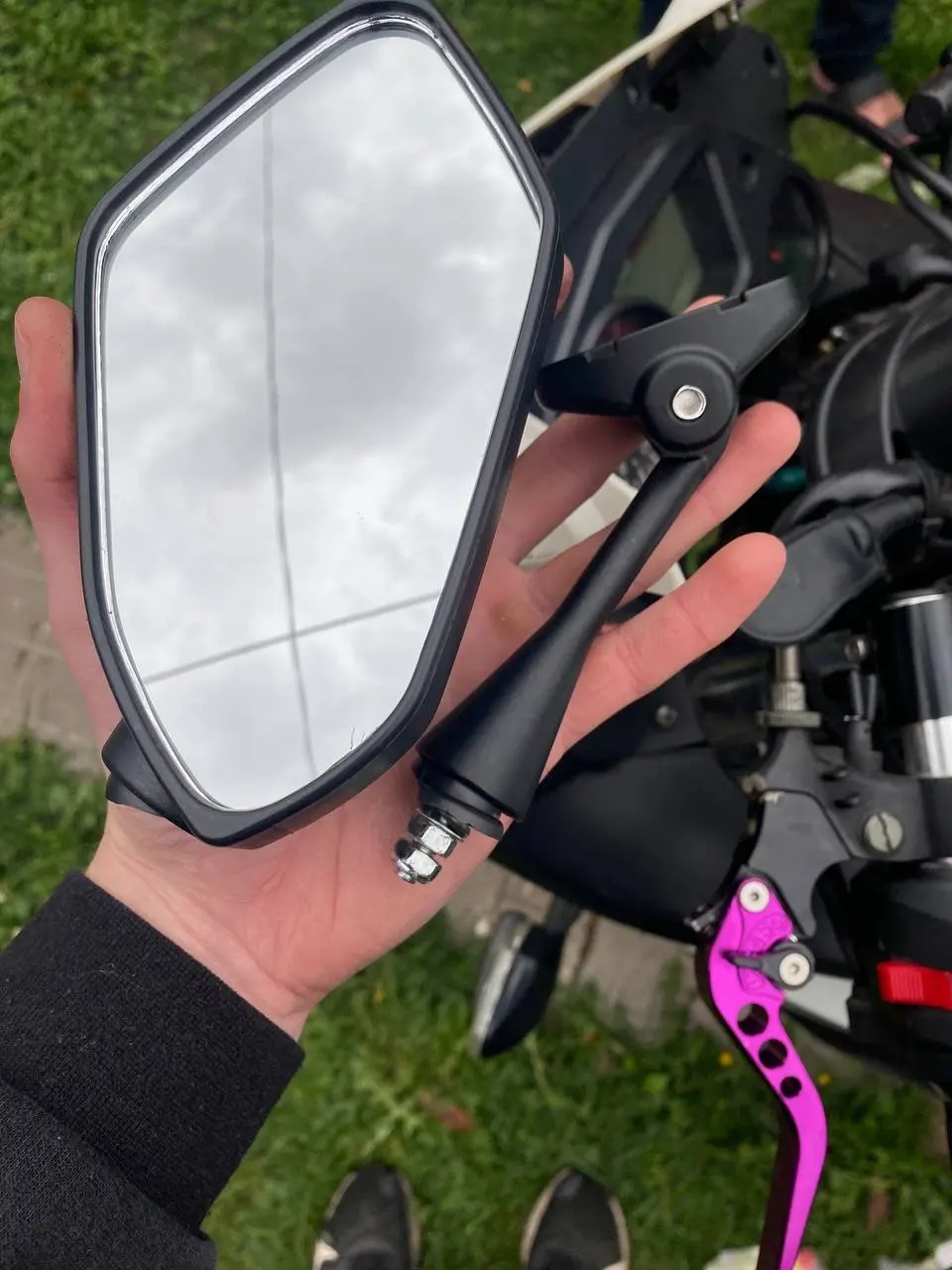 Небольшие царапины на креплении, а так товар нормальный. Брал такие же, болты лучше пройти фиксатором резьбы или зеркала сложатся от вибрации .