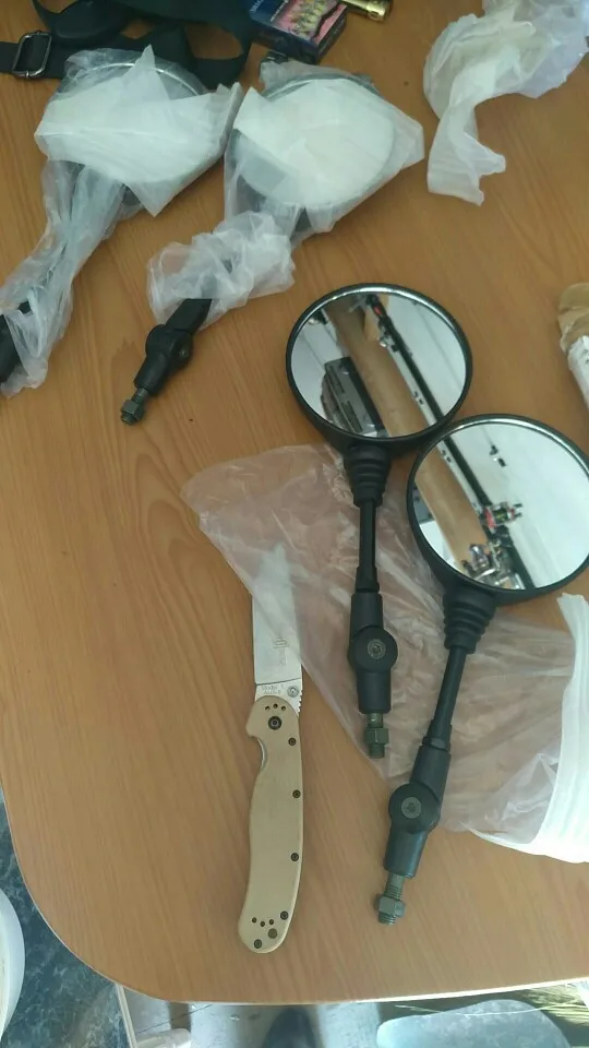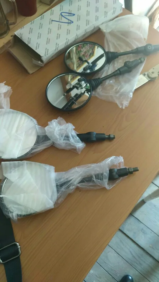 Очень маленькие и лёгкие - похожи на алюминиевые. Если лопнут - дугой не заварить (с кронштейнами такое случается). Впрочем, при их цене это неважно. Держатся хорошо, но для тяжёлых зеркал нужно чтото поосновательнее. Резьба в обоих правая. Брать можно.