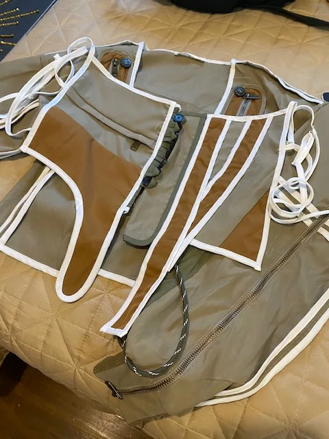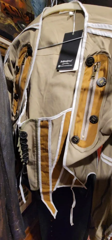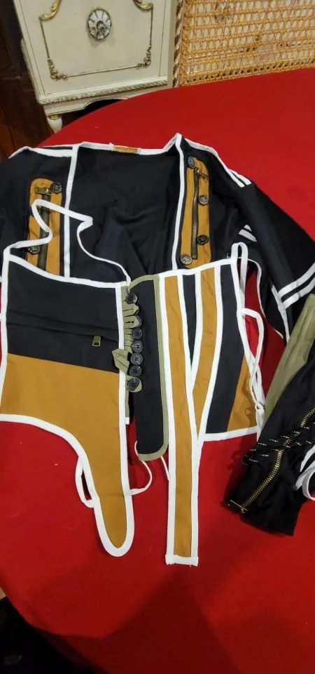 Полностью соответствует описанию. Качественное изделие. На мой размер груди 95D оказалось маловато и без блузки носить невозможно. Пришлось переднюю деталь использовать как фальшкорсет)) хотя если доработать и соединить между собой две части данного изделия , то получится куртка на пуговицах спереди. Рукова длинные, но можно собрать на шнурок. Эффектная вещица. Всё понравилось, всем спасибо.