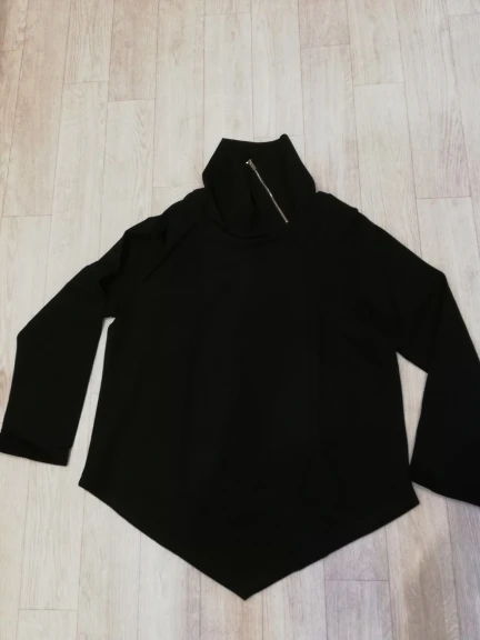 В восторге! Кофточка из плотного материала. Воротник супер! Единственное рукава коротковаты на рост 170 см, но это не портит саму модель. Фото сделаю после стирки. Есть небольшой запах.