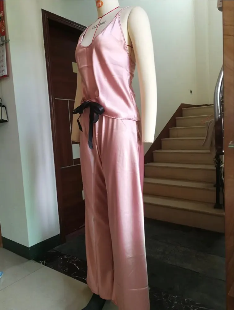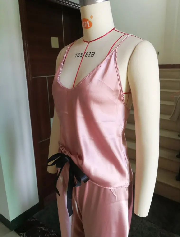 Женская атласная пижамная комплект сексуальное женское белье сплошной камзол брюки комплект бант пижамы мягкая одежда для отдыха