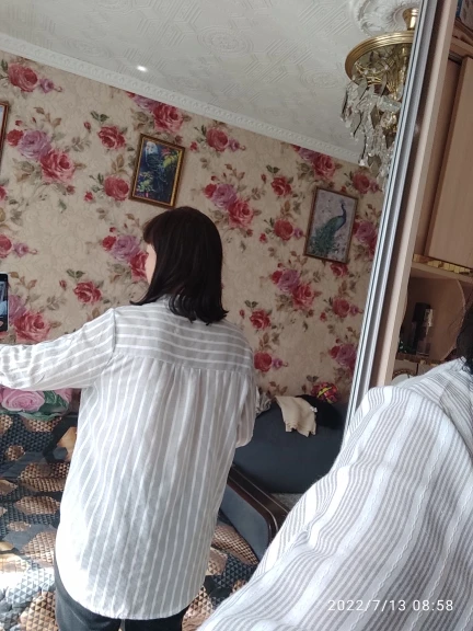 Женская блузка в полоску, из хлопка и льна